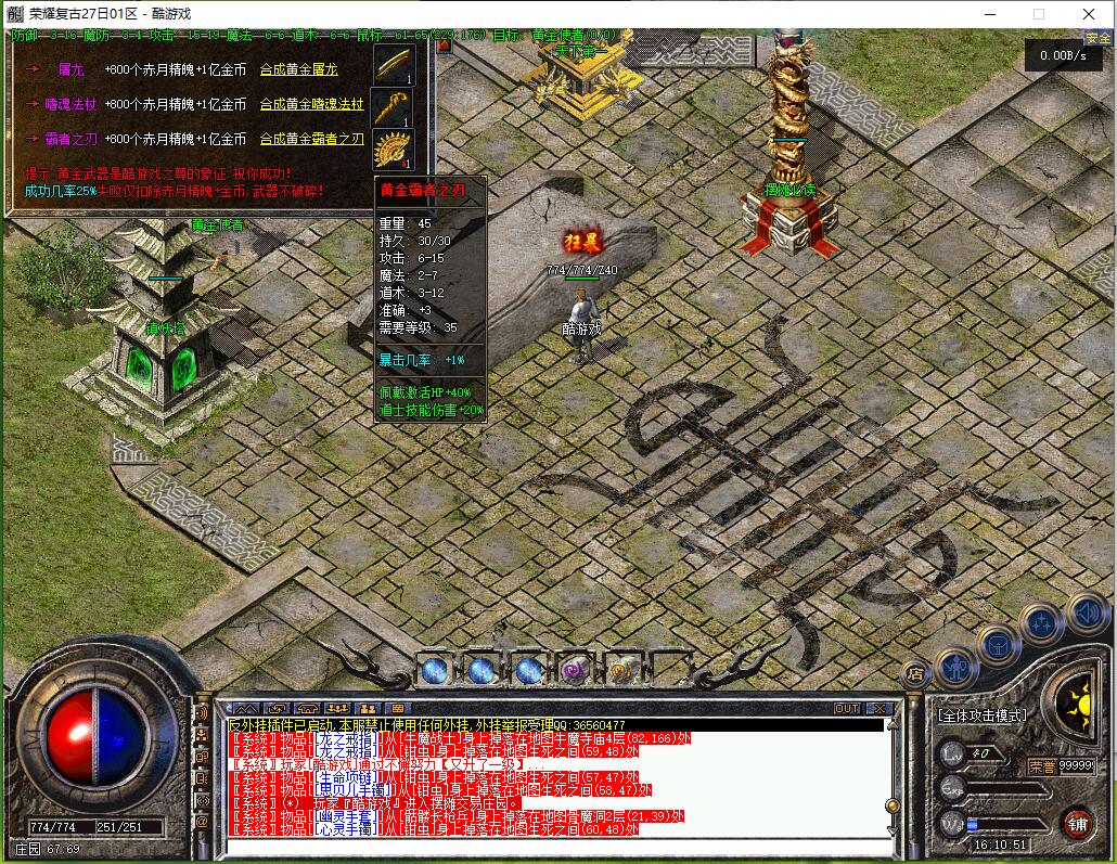 - 66万以上:出屠龙系列、命运红剑、经验卷、赤月;荣耀爆爆爆(爆红剑或命运一把,若干祖玛、赤月。凌晨12点不消灭就自动消失)。