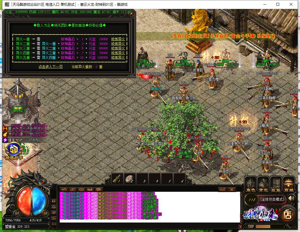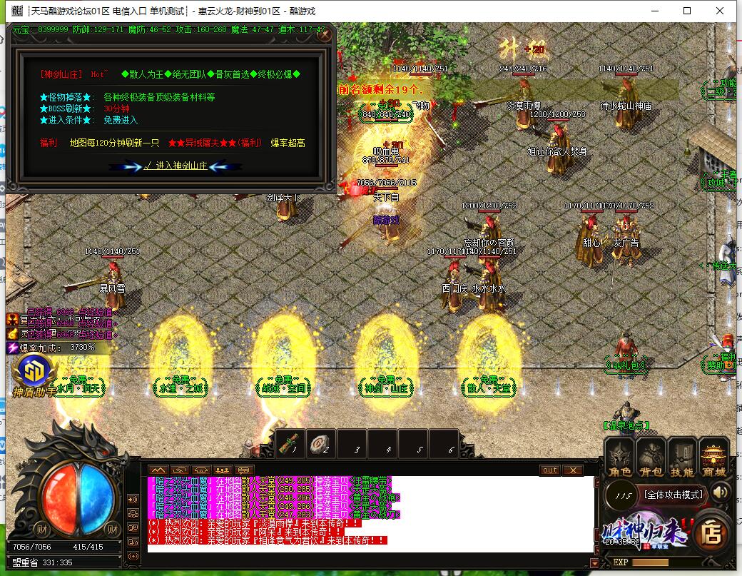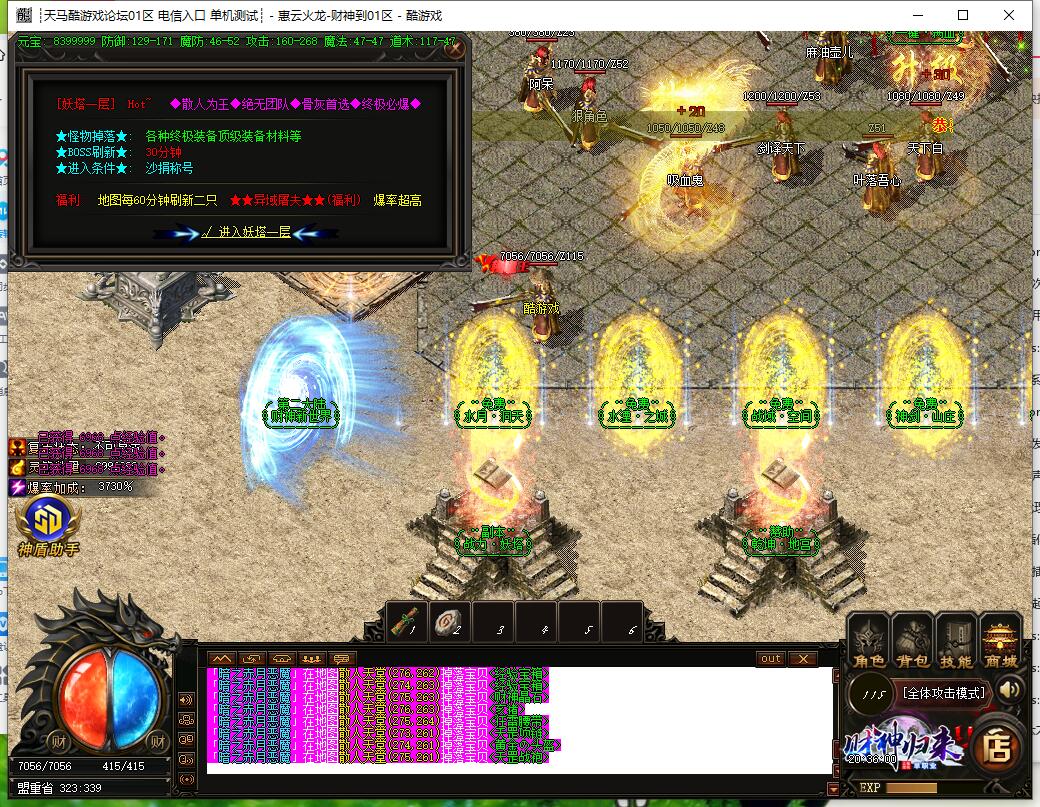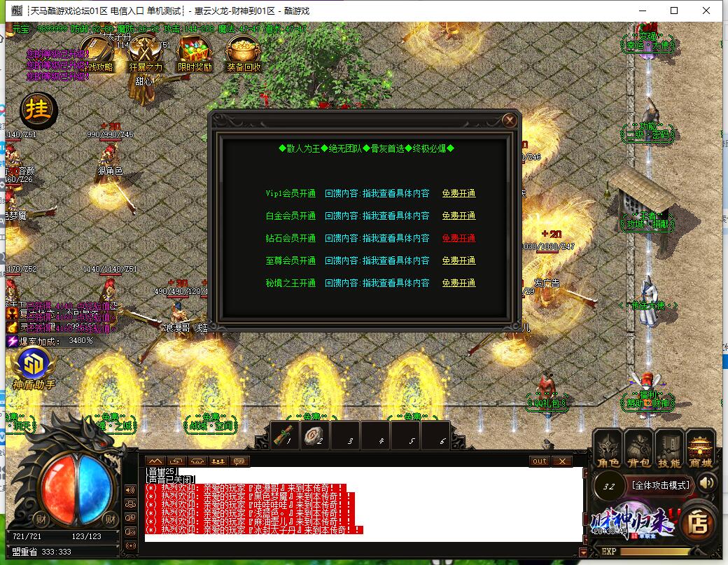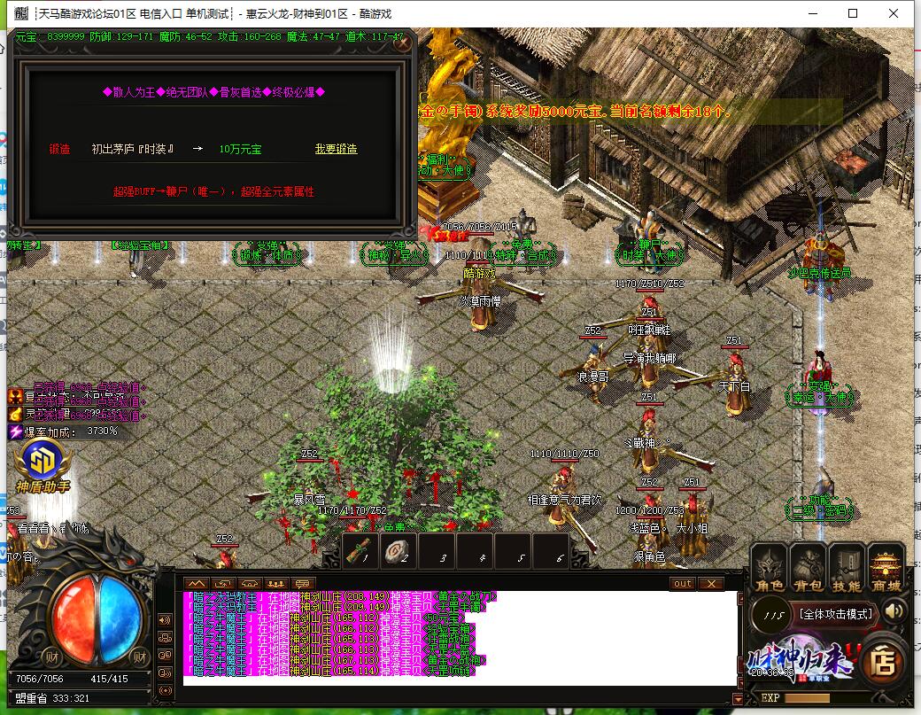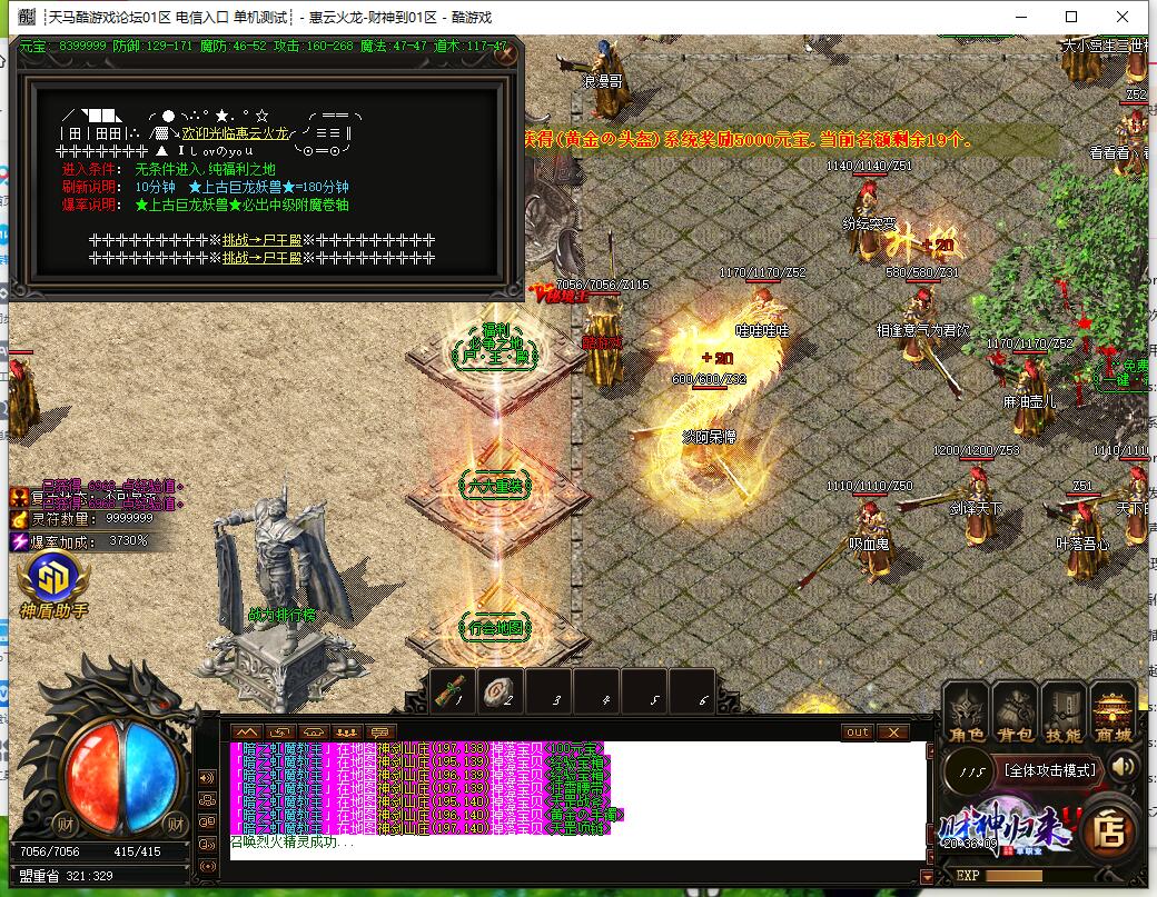 全民火龙单职业微变版本,纯散人服不花钱也可终极,一切靠打无合成,散人打金地图多怪物刷新速度快,装备货币保值,每日人品大爆发轻松300+收入。每天稳定四区开放(10:30 14:30 18:30 22:30),每个地图终极福利BOSS每晚22:01刷新,首区攻沙奖励RMB 588无封顶。市场最强封挂系统24小时接受举报,提醒设置二级密码防扫号。适度游戏益脑,拒绝盗版,享受健康生活。