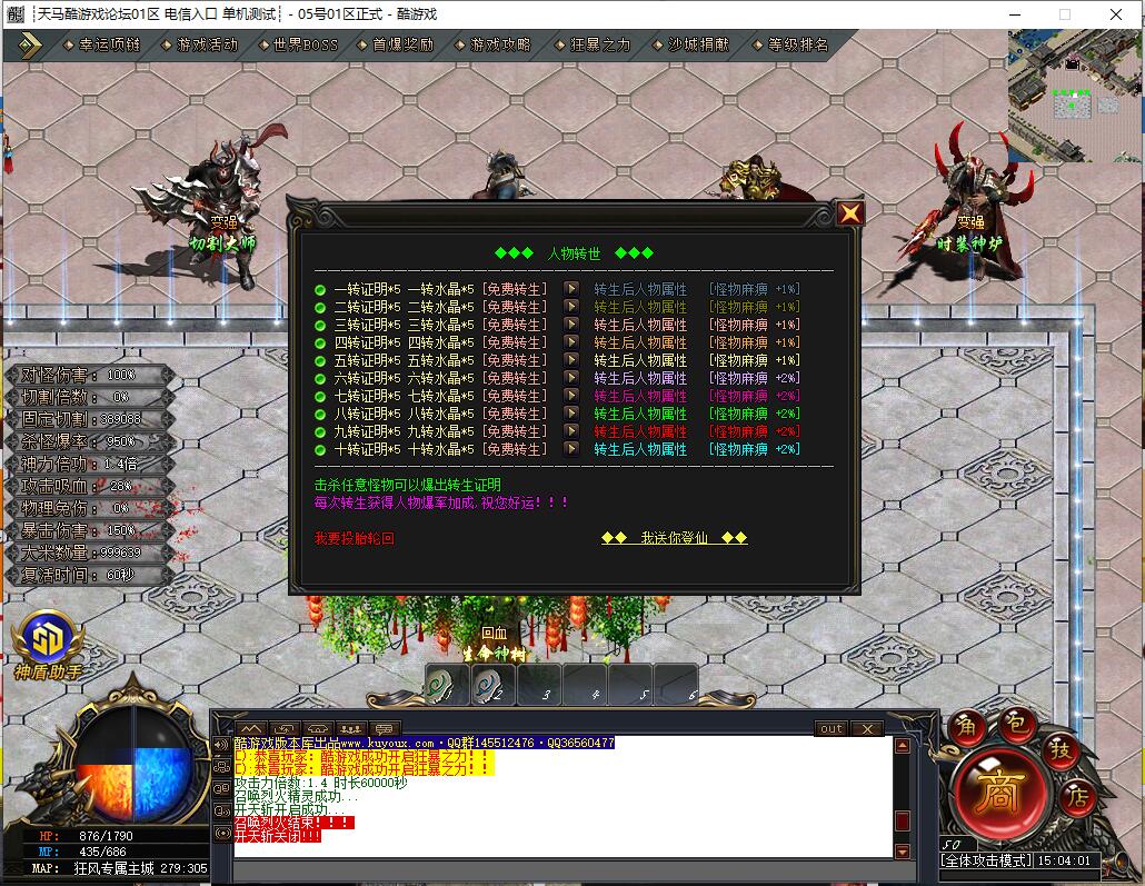 等级与转生系统:支持1-40级,1-4转生,0级起始,以及88级、188级、288级、388级、488级等进阶等级。