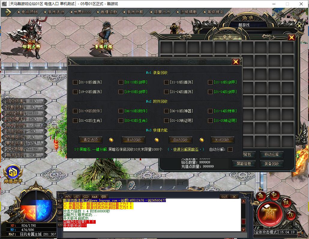 巡航挂机系统,支持嘲讽功能,轻松拿沙(沙巴克),每个满号累计50奖励,彻底解放您的双手。