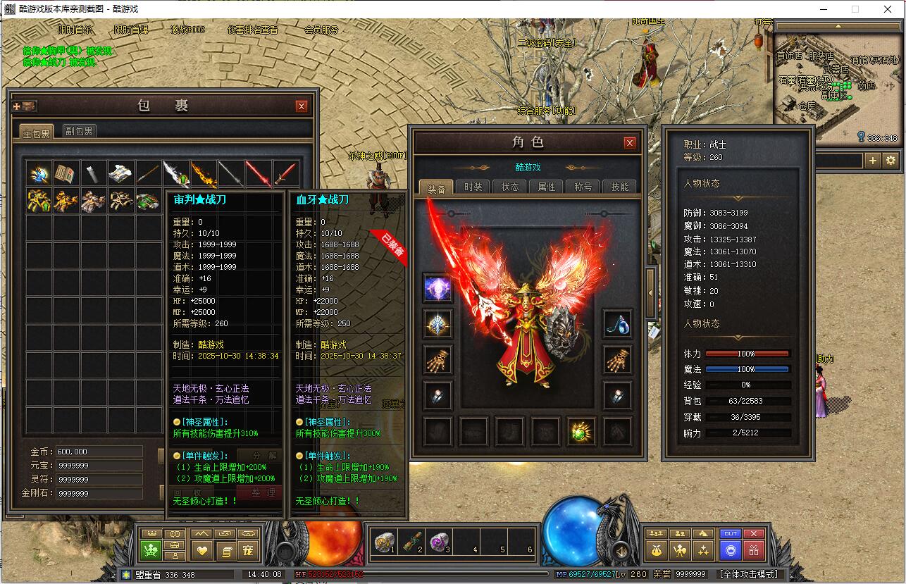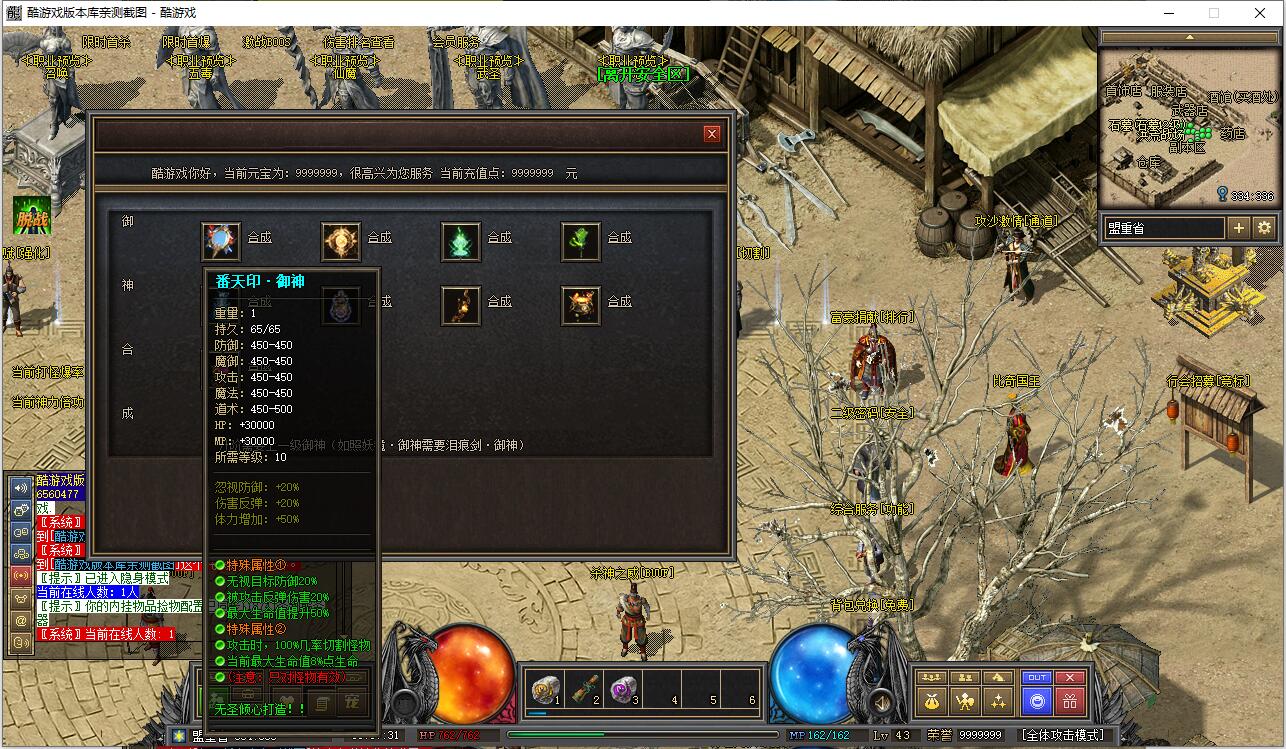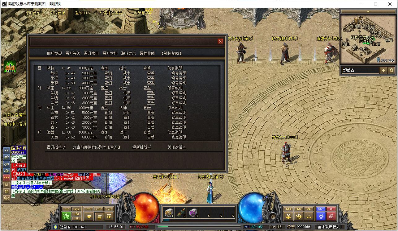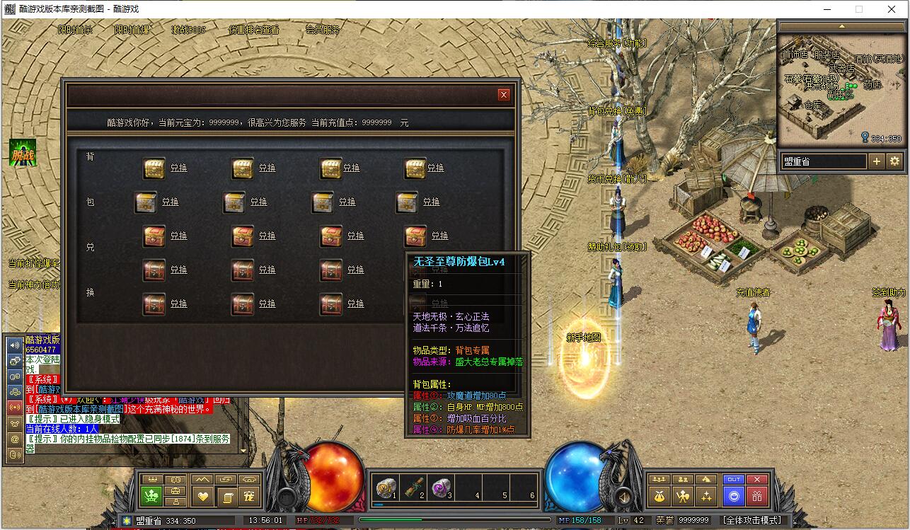 早期负重卖药火爆地带的NPC添加了负重卖药的功能,合成师可合成早期40级职业装。添加了盟重药店攻击神水任务和比奇武器店双倍卷轴任务。