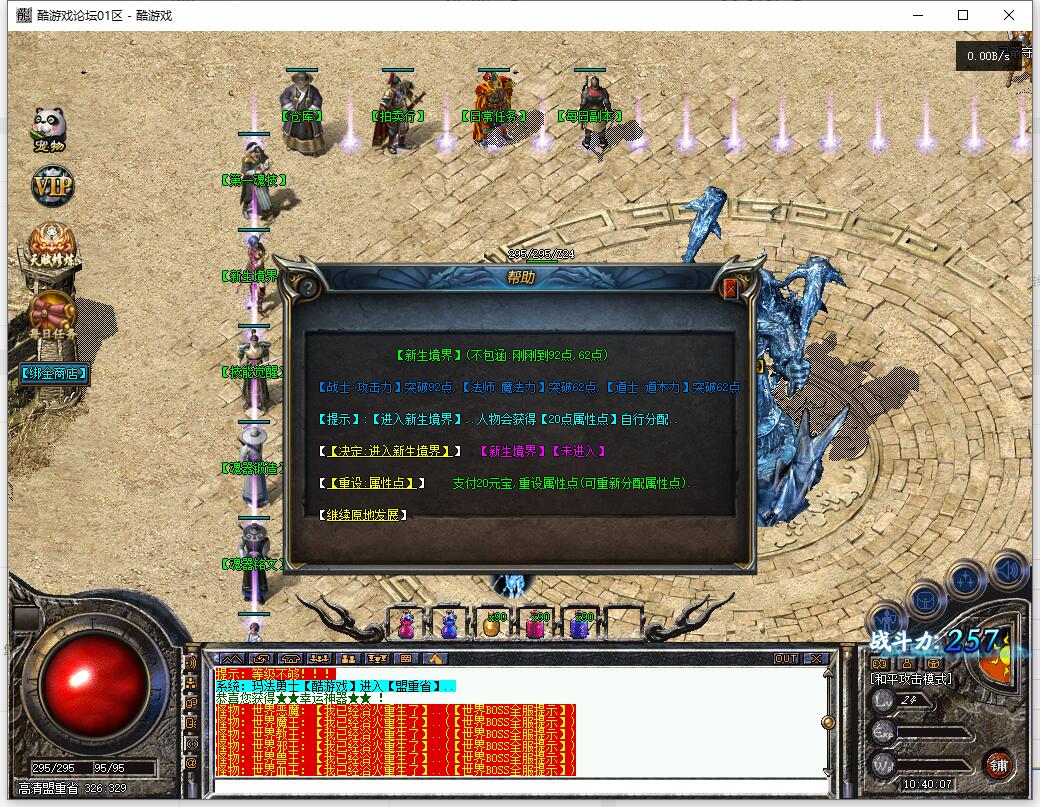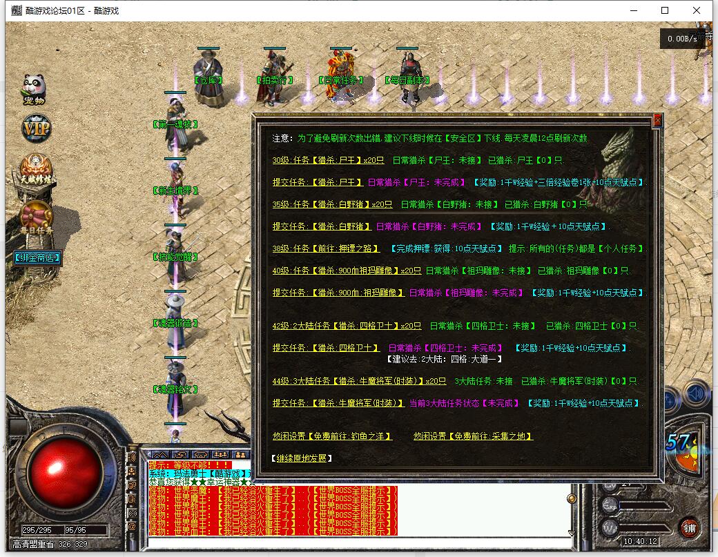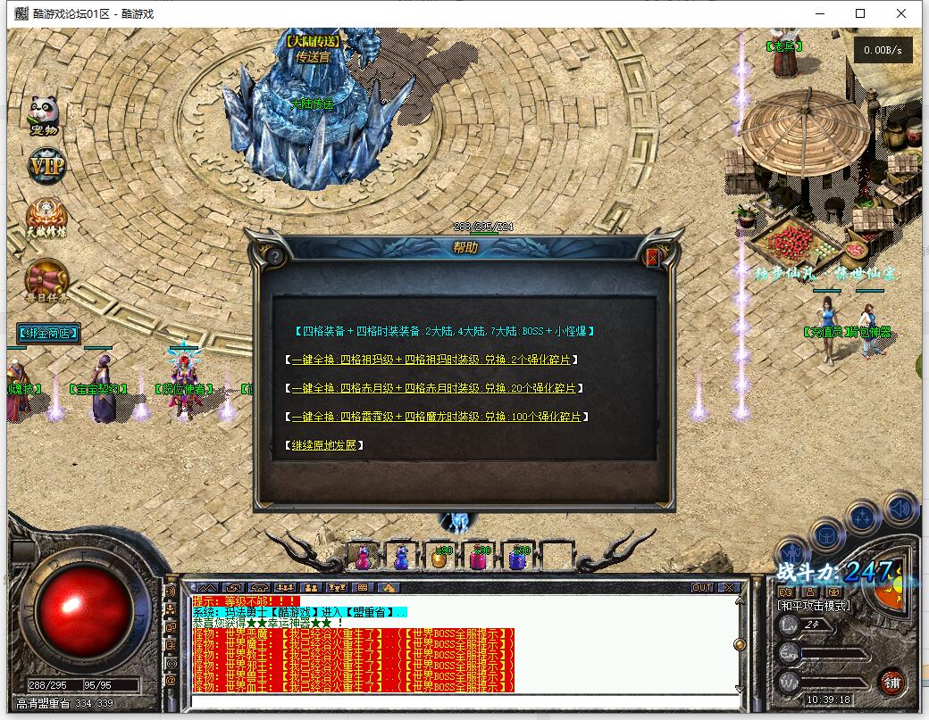 传奇游戏最新版本更新:新增智能挂机系统(入口位于综合服务内),优化所有怪物爆率(专属与材料爆率大幅提升),新增三个不爆物品,同步上线手写攻略(建议配合查询系统游玩,游戏难度适中)。增加元宝获取途径(杀怪即可获得元宝,适配后期高消耗需求),新增两个背包神器,调整金币获取规则(不同赞助等级对应不同获取量),金币回收倍率与赞助等级挂钩。修复3个剧情地图因不刷怪导致的中断问题,解决强化框不显示无法强化的故障,优化杀怪点变量及称号领取条件(一晚上可领完)。整理土城NPC布局(删除无用NPC,界面更整洁),新增GM可控真假爆率系统,优化人物初始攻速(非无限刀)。完成多处剧情地图问题修复与优化:赤沙龙城材料调整;剧情二四个NPC货币消耗、材料及概率优化(适配周服节奏);剧情三老者/尊者材料数量与成功率优化、老马猴/卖酒老头/定海神针合成修改、震天凯/穿针引线合成问题修复;云顶天宫进图条件调整,难度适当降低。
