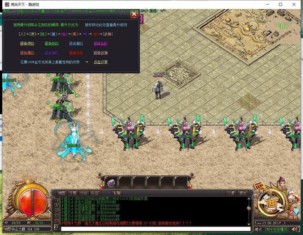 沉默降临是一款情怀单职业传奇游戏,定位公益追梦版,为长期服,装备保值,拒绝快餐模式。特色包含唯一赞助3600沉默币狂暴之力,300沉默币普通沙捐,2000沉默币神豪沙捐,3000沉默币神魔保底(保底8800沉默币)。账号档次分两档:落地全满号(狂暴3+沙捐50+赞助36+神魔88,共177元)、大哥全满号(含额外祈福20次,共353元),无隐藏消费与比例。宝宝成长:0级战兽、50级高级战兽、55级超级战兽、58级终极战兽(群攻)。开荒路线:落地矿区打白怪(狂风项链戒指)→全图圣兽→粉色装备(爪子吸血头)→渡劫选左边吸血命格→合特殊优先盾→开黄(紫色追梦效率低不建议)→开红(可卡怪或堆属性)→开人行。重要提示:十步一杀在56级震天宫三层花费888万金币获得,入口坐标97.17,称号卷轴通过活动或蓝色怪(圣兽)、恭喜发财爆出。郑重承诺爆率全开、公平公正,听取玩家意见重金酬谢,致力于良好游戏体验。沉默币充值比例1:100。