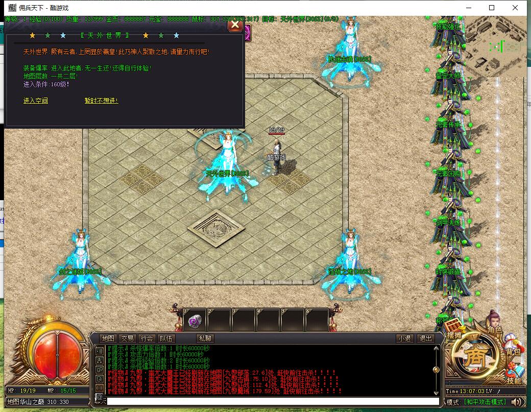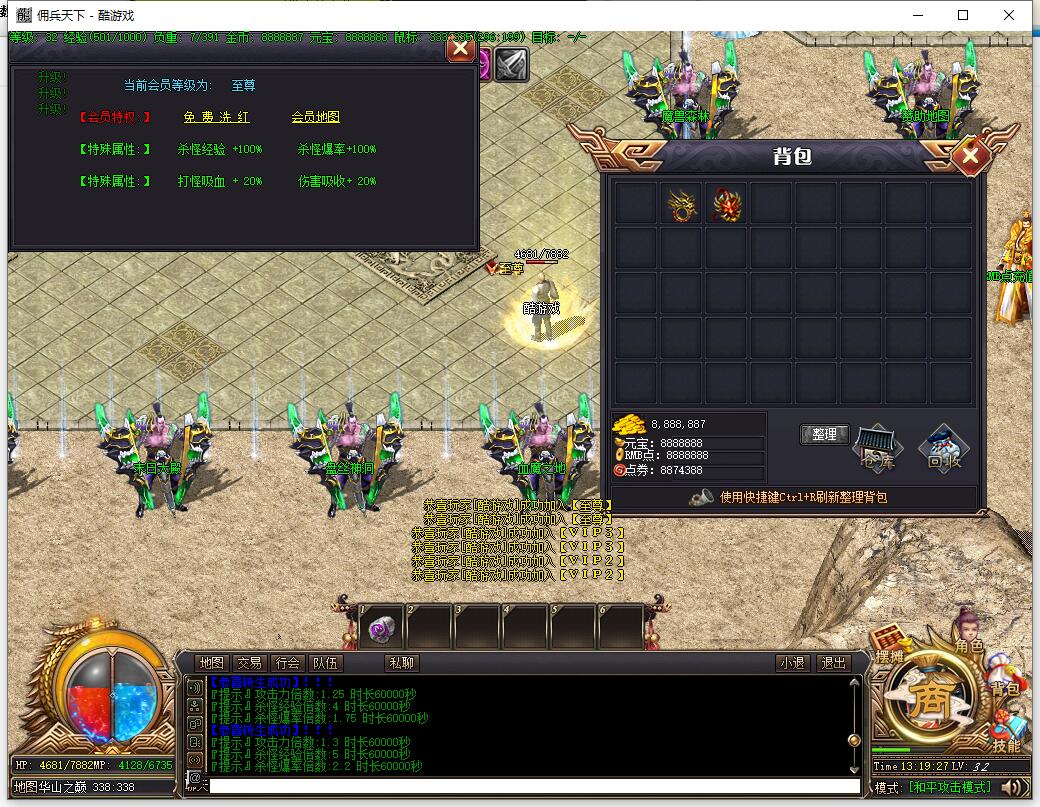 传奇游戏最新版本更新:新增智能挂机系统(入口位于综合服务内),优化所有怪物爆率(专属与材料爆率大幅提升),新增三个不爆物品,同步上线手写攻略(建议配合查询系统游玩,游戏难度适中)。增加元宝获取途径(杀怪即可获得元宝,适配后期高消耗需求),新增两个背包神器,调整金币获取规则(不同赞助等级对应不同获取量),金币回收倍率与赞助等级挂钩。修复3个剧情地图因不刷怪导致的中断问题,解决强化框不显示无法强化的故障,优化杀怪点变量及称号领取条件(一晚上可领完)。整理土城NPC布局(删除无用NPC,界面更整洁),新增GM可控真假爆率系统,优化人物初始攻速(非无限刀)。完成多处剧情地图问题修复与优化:赤沙龙城材料调整;剧情二四个NPC货币消耗、材料及概率优化(适配周服节奏);剧情三老者/尊者材料数量与成功率优化、老马猴/卖酒老头/定海神针合成修改、震天凯/穿针引线合成问题修复;云顶天宫进图条件调整,难度适当降低。