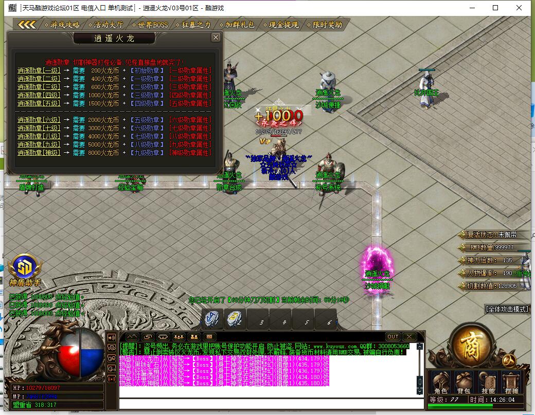 火龙币1:1000 测试区打到元宝正式区返还100% Rmb点 1:1 10元起提现 提现扣除10%平台手续费