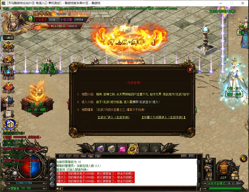 充值玩家:上线领充值回馈,吃1000级卷,在盟重升满称号和转生,完成第一章诛仙任务(合成四大神兽星魂为先天混沌印记),直接下朝歌。