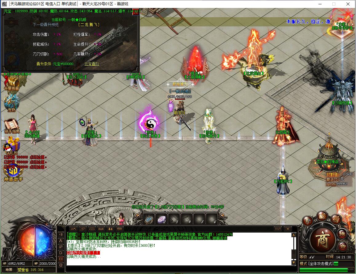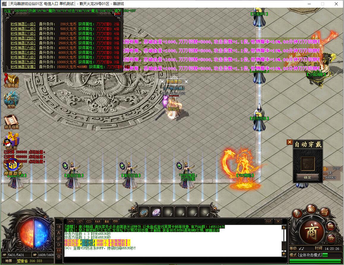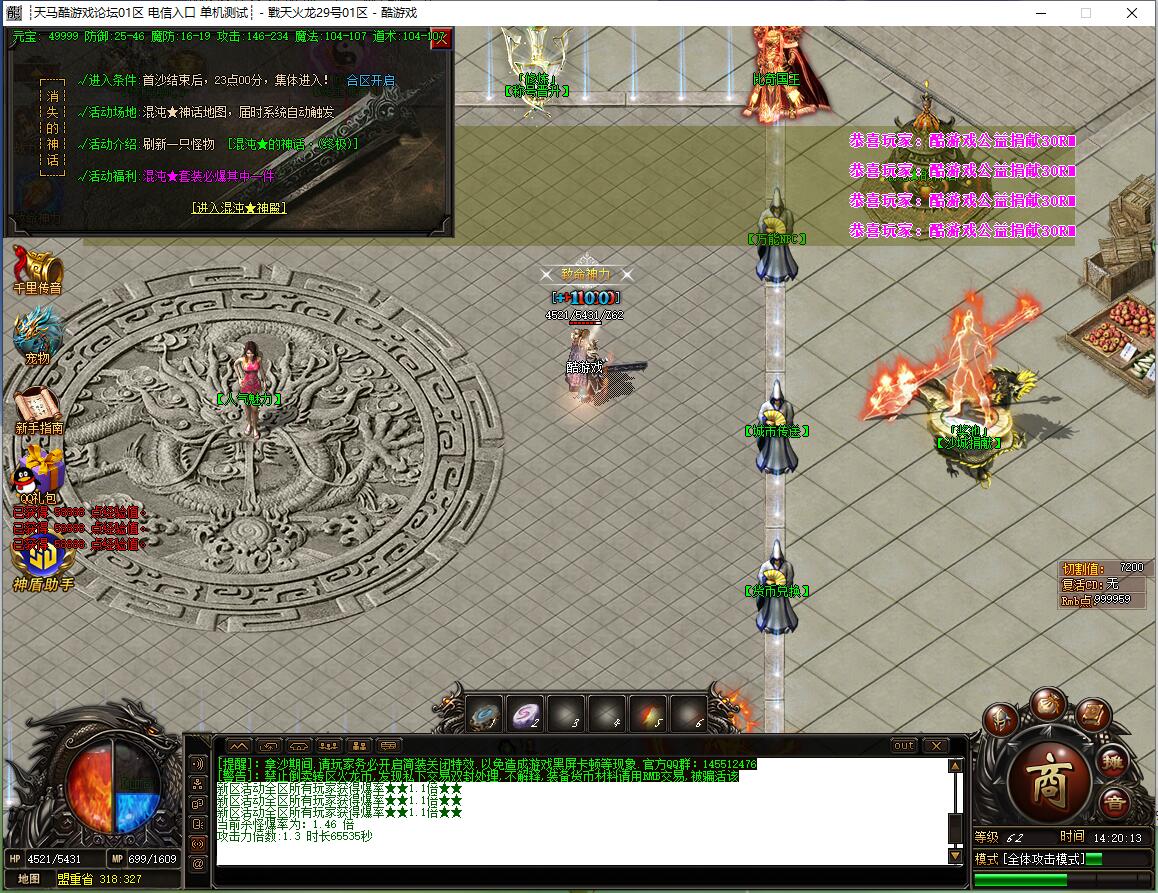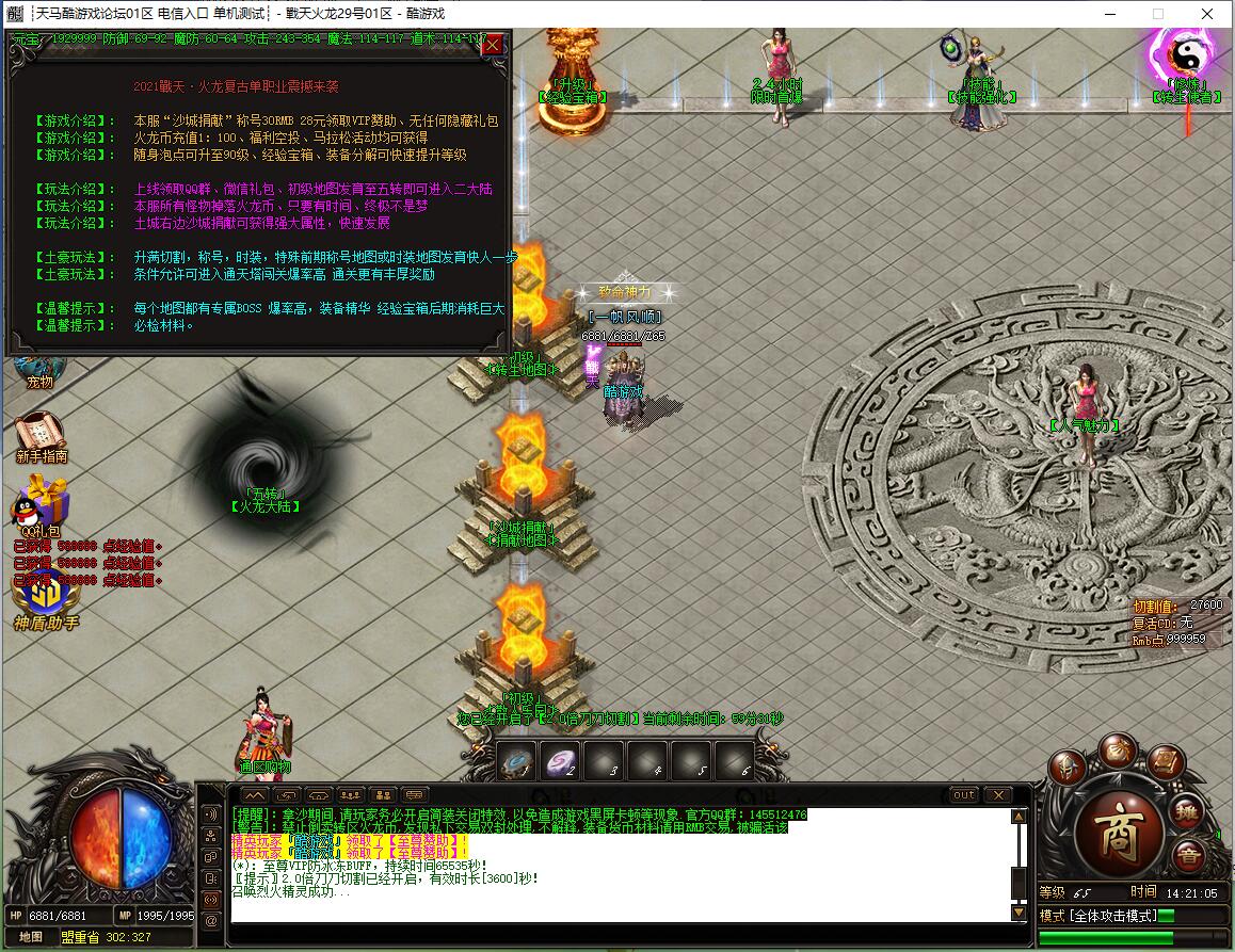 全民火龙单职业微变版本,纯散人服不花钱也可终极,一切靠打无合成,散人打金地图多怪物刷新速度快,装备货币保值,每日人品大爆发轻松300+收入。每天稳定四区开放(10:30 14:30 18:30 22:30),每个地图终极福利BOSS每晚22:01刷新,首区攻沙奖励RMB 588无封顶。市场最强封挂系统24小时接受举报,提醒设置二级密码防扫号。适度游戏益脑,拒绝盗版,享受健康生活。