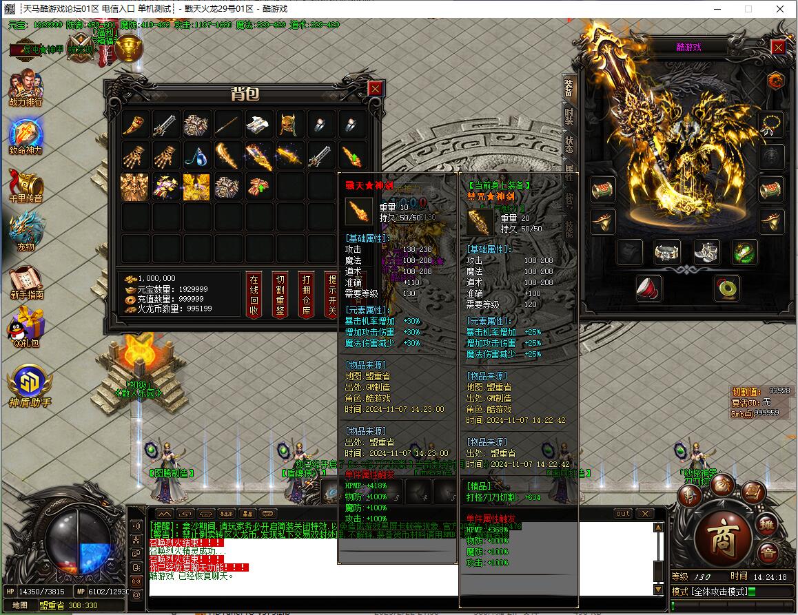 本服还原干净聊天框,无垃圾信息及回收提示,商铺不售材料全靠打怪,永久回收物品均由怪物爆出。游戏问题可QQ群联系客服完美解答,无论是否消费均用心服务,所有玩家公平对待。交易安全需通过商铺RMB点交易,提现手续费仅10%;私下交易一经查实封号并清除提现记录;禁止自动刷屏、骂人小号占安全区,违者警告或封号;严禁加速脱机外挂,发现必删永不解封。