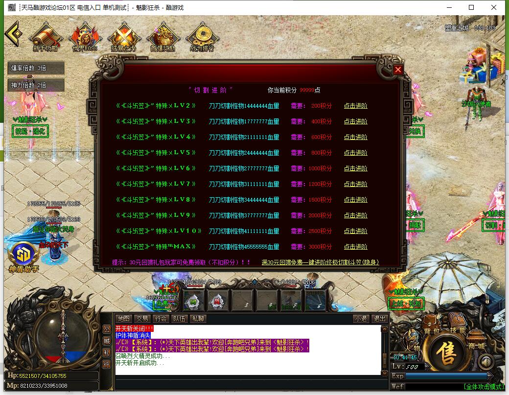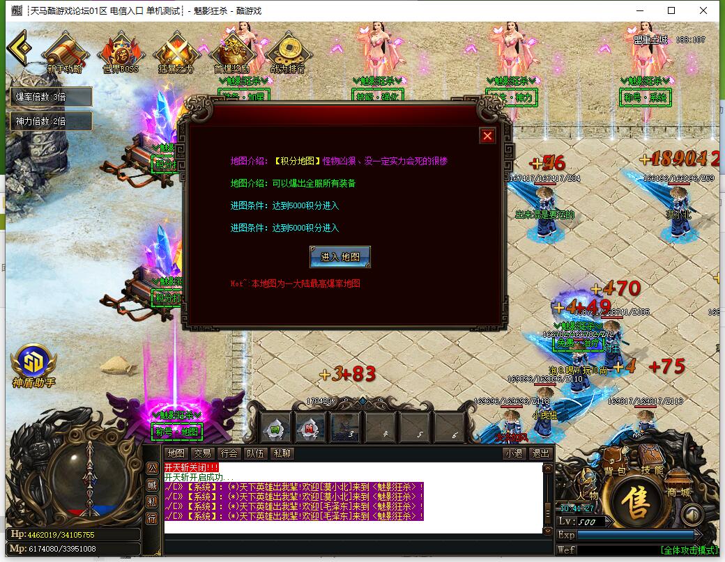 - 怪物必爆掉落积分,积分在土城可以兑换充值点,等级越高的怪掉落越多。