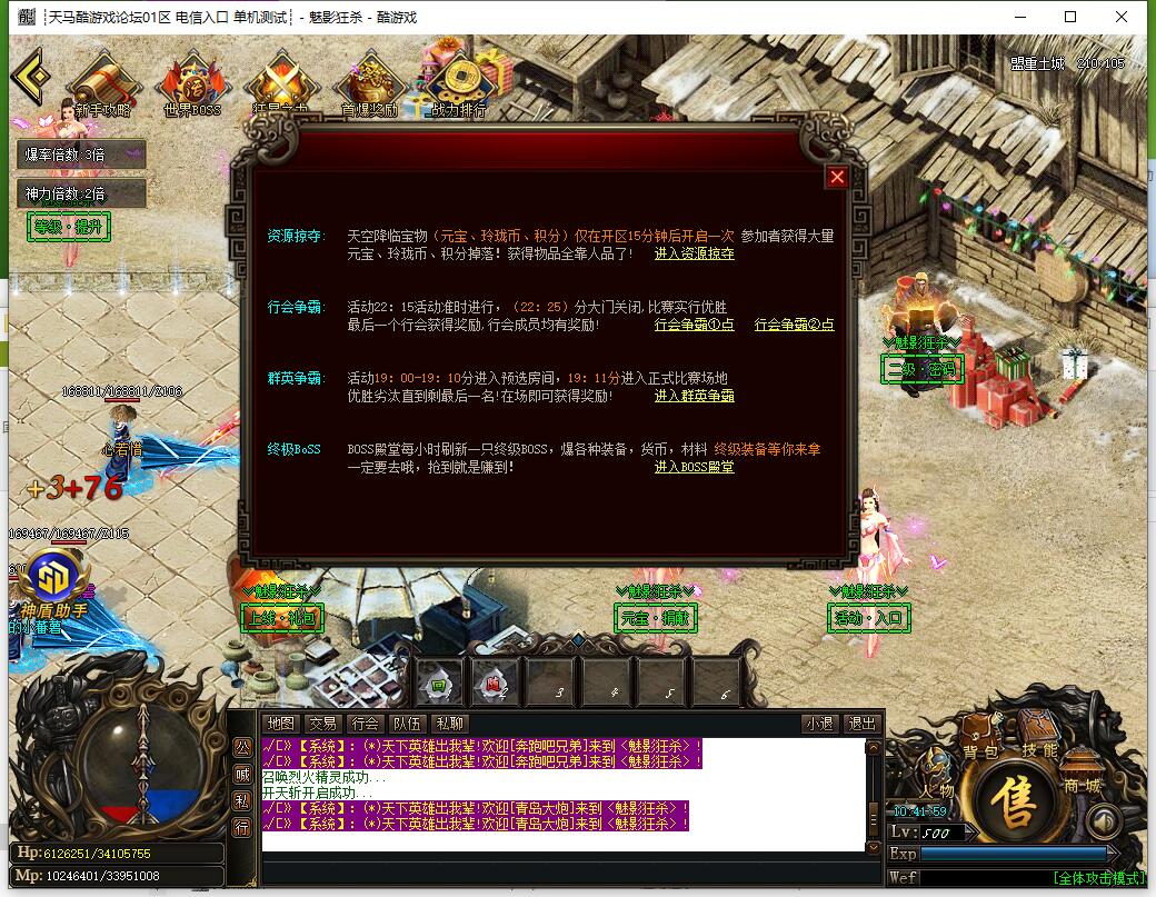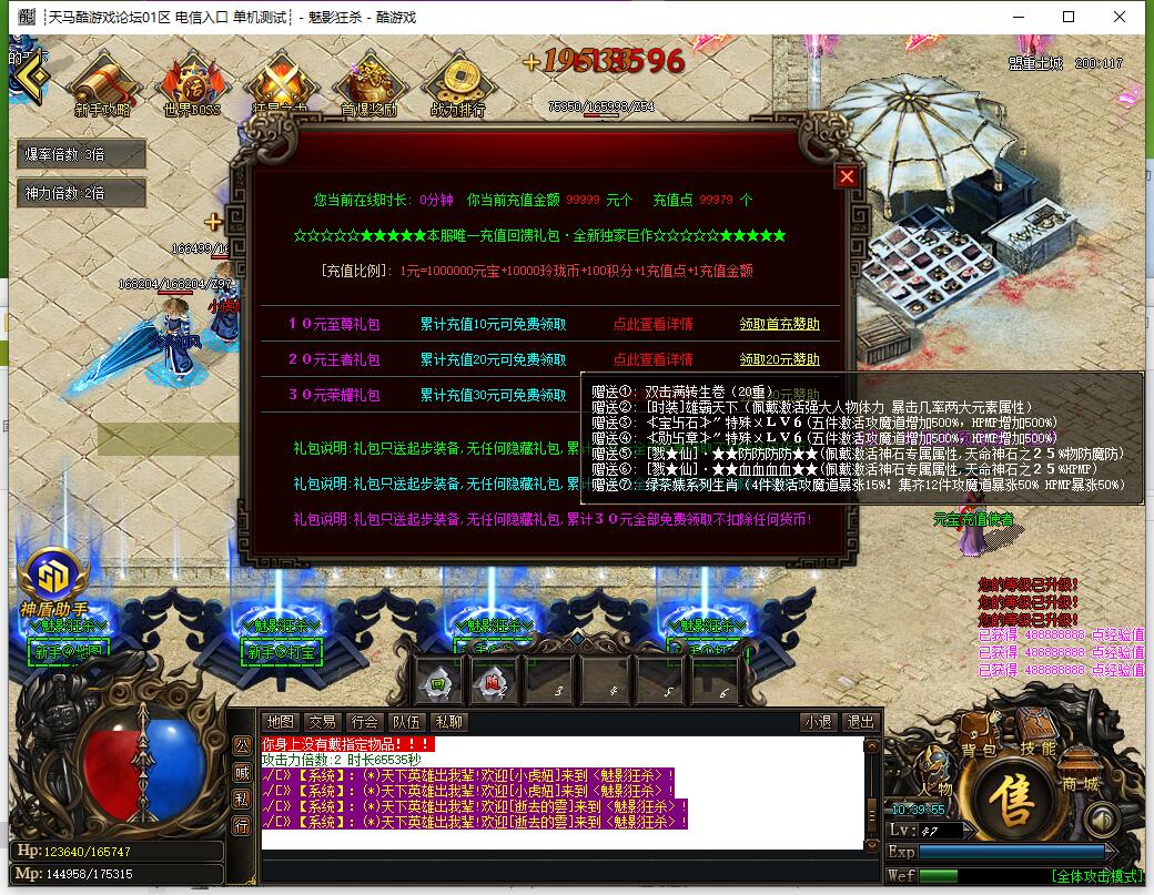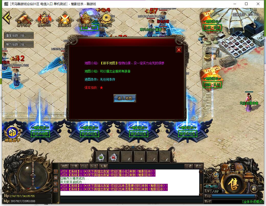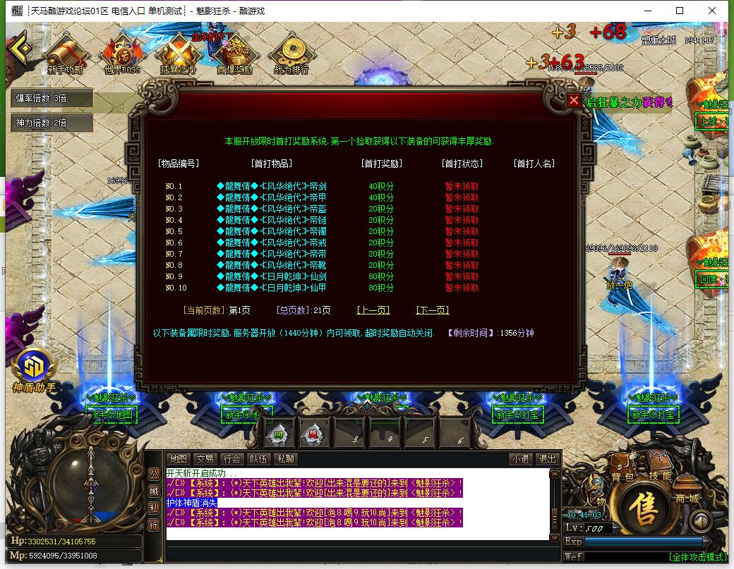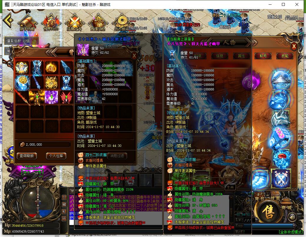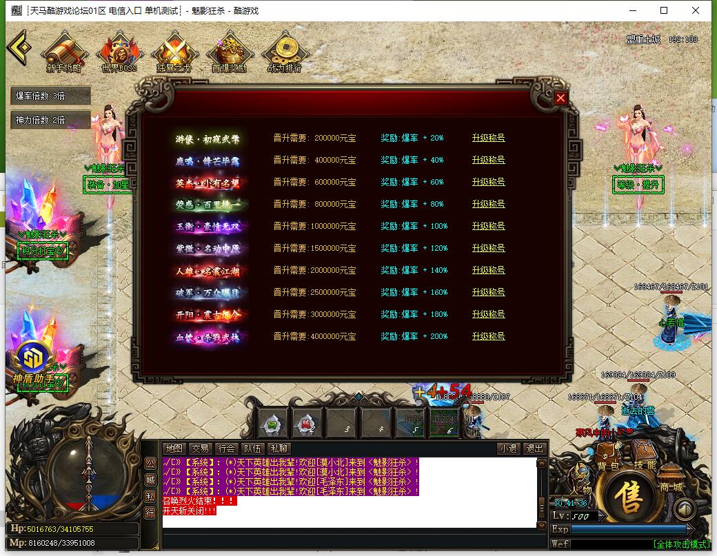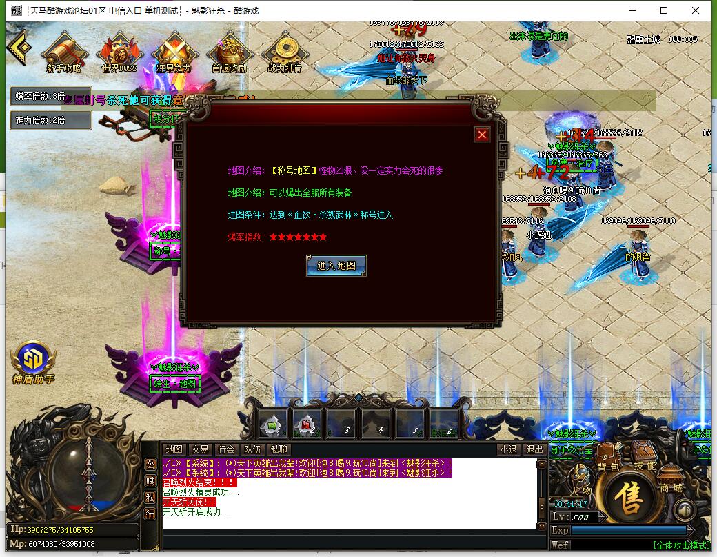 - 本服爆率全开,所有材料装备都能爆出,一切看脸,建议玩家先升级称号增加爆率。