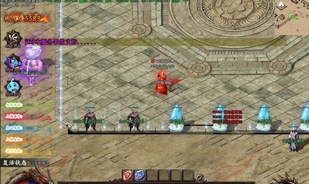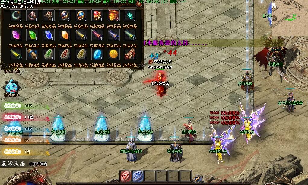 - 捐献狂暴开启,进入捐献地图,先打小怪,疯狂打限时,打到的金光币搞称号和抢捐献。