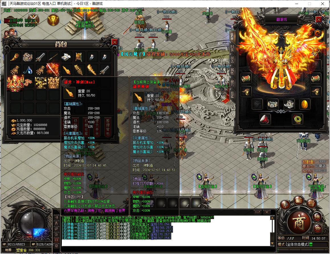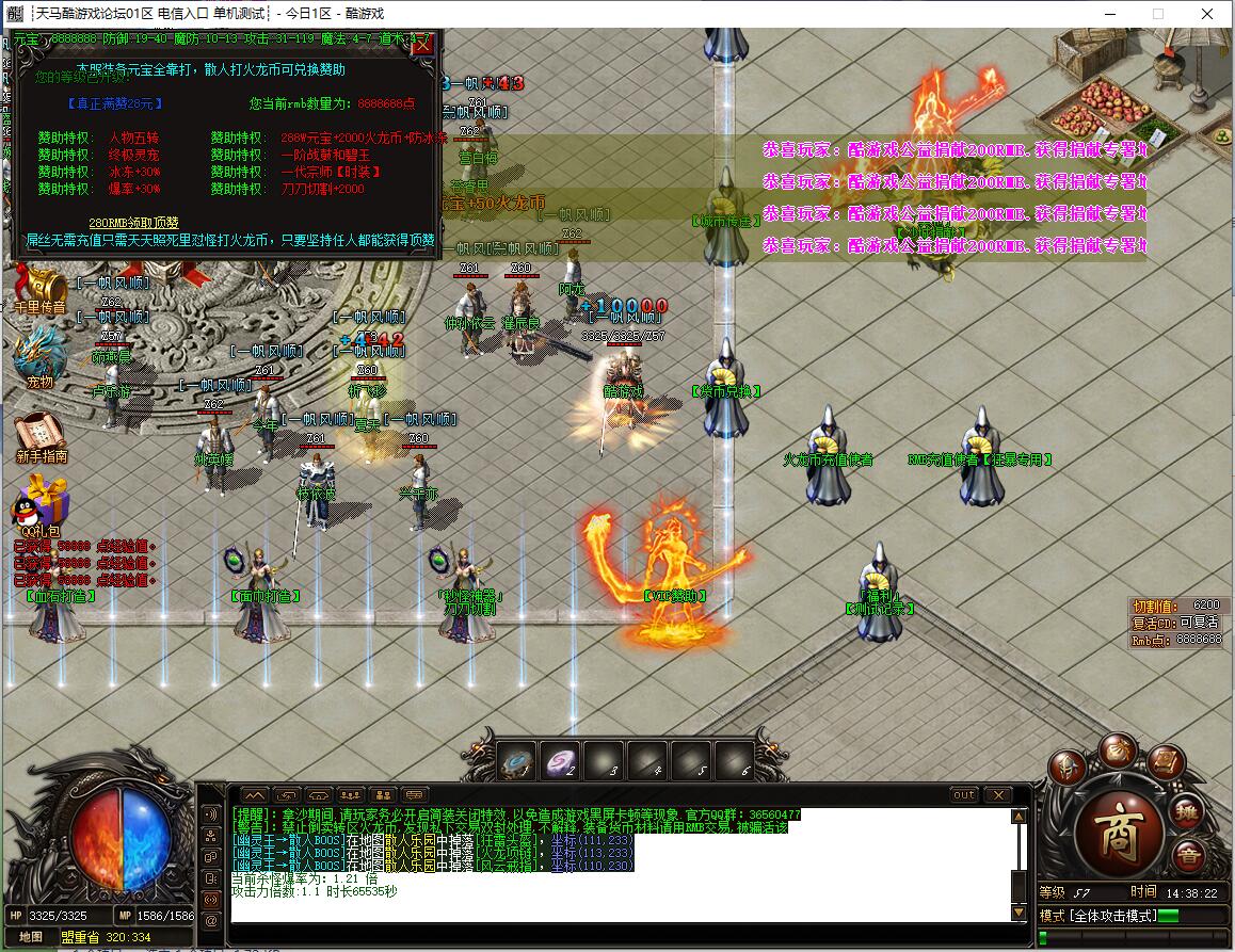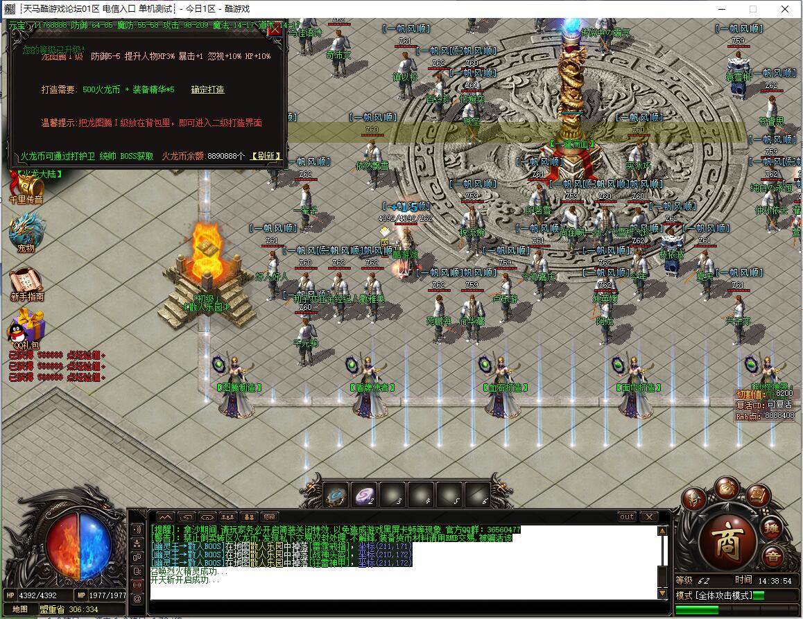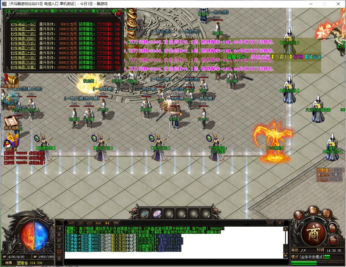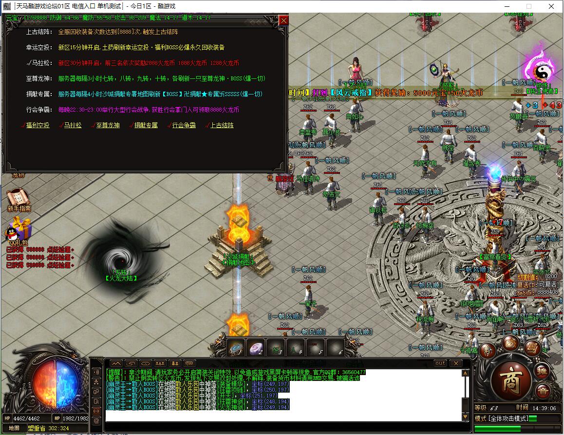 【公告】火龙币1:200,全区所有怪物都可爆火龙币,首爆奖励无限额。
