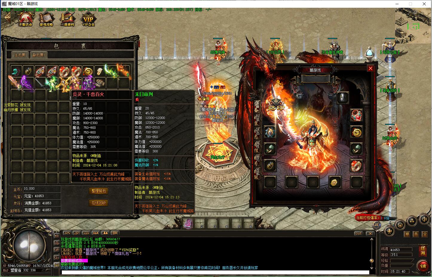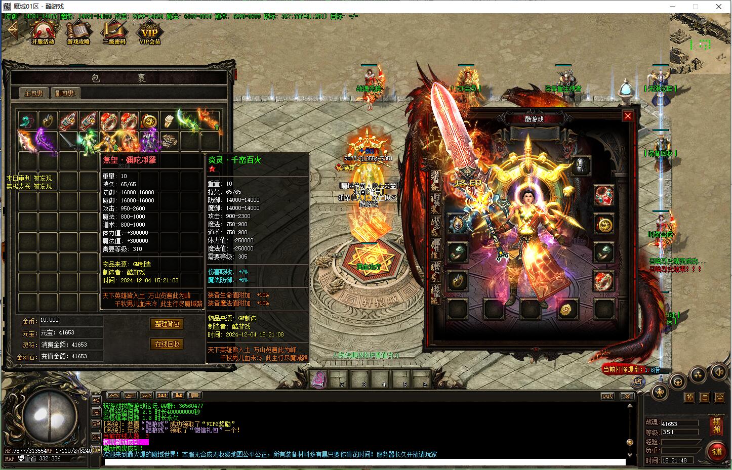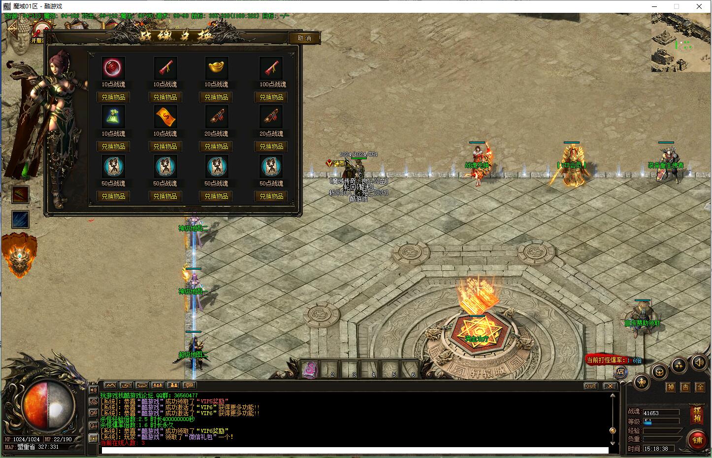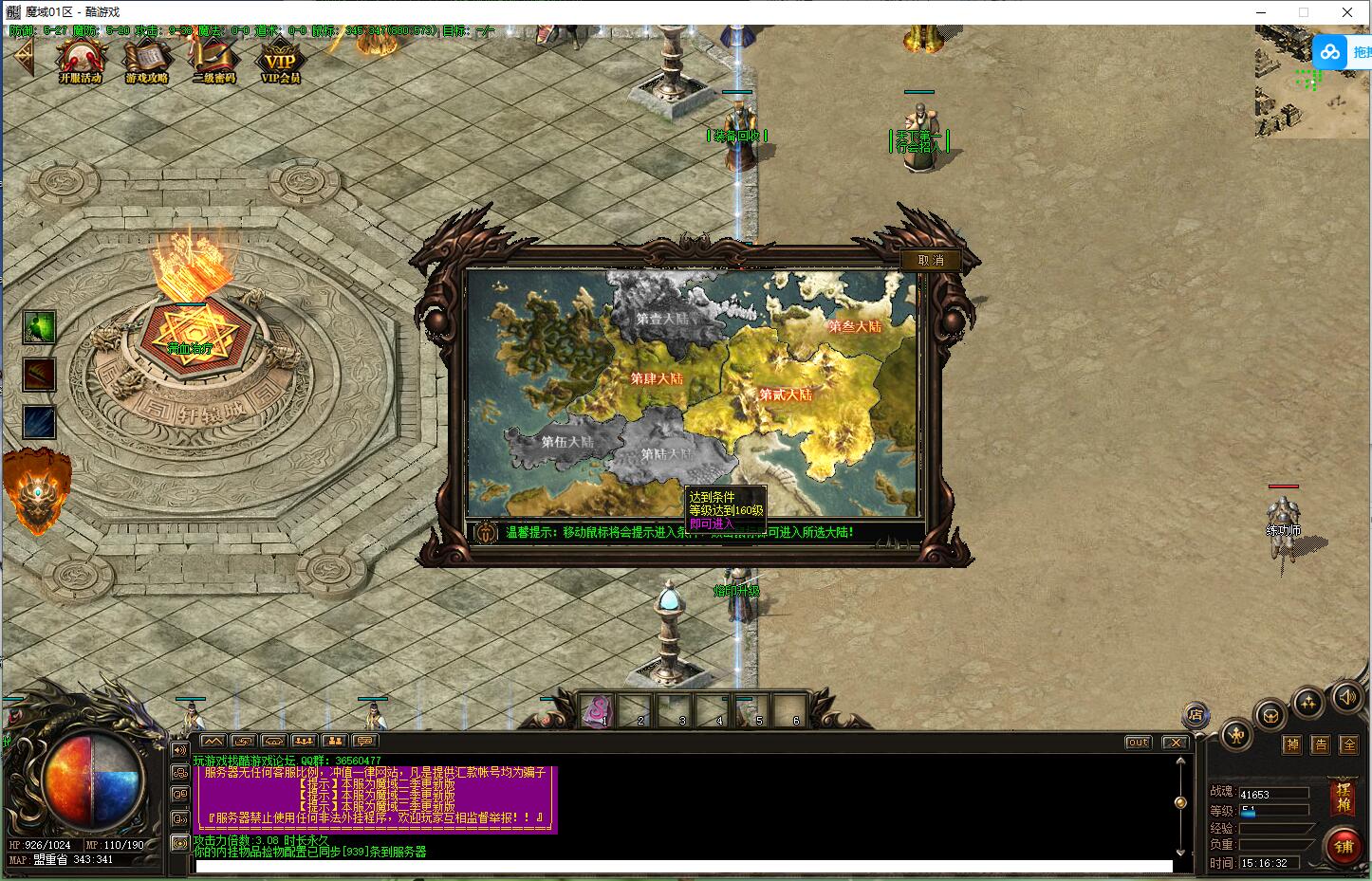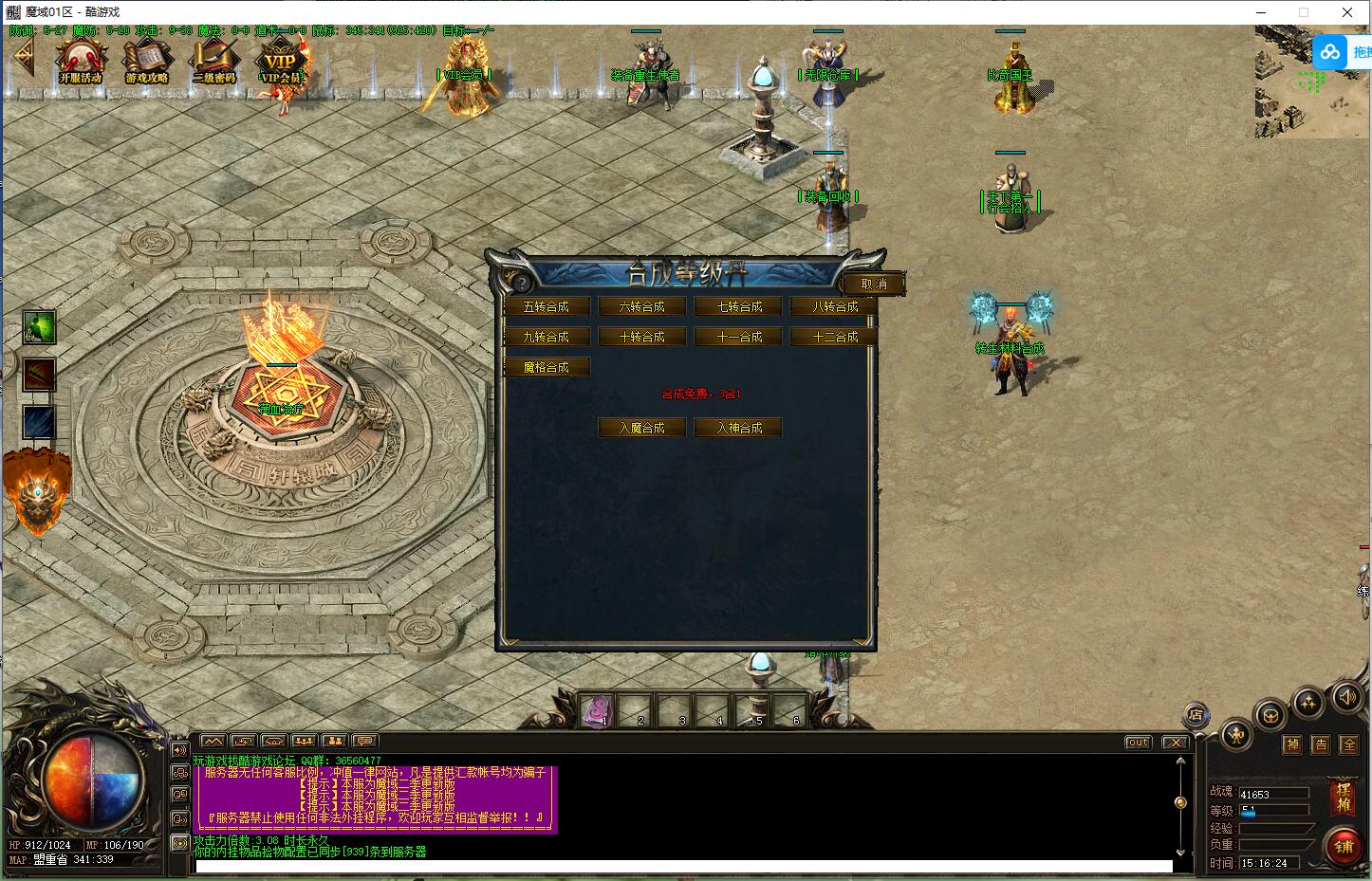 欢迎来到最火爆的魔域世界!本服无合成无收费地图公平公正,所有装备材料多有暴只要你肯花时间!服务器长久开放请玩家