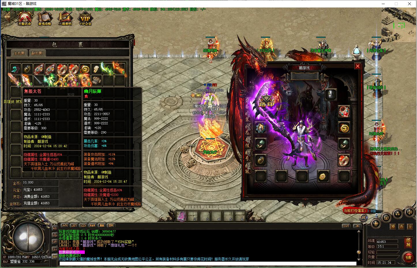 【游戏帮助】大家打到紫色特殊装备可以投入次元结阵,可获得大量战魂,次元结阵达到300层时将会开启。
