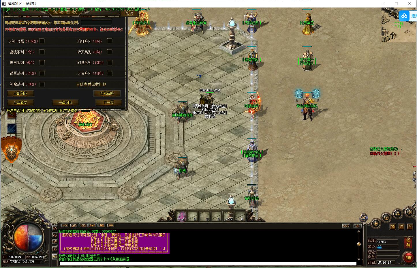 【游戏帮助】服务器所有装备和材料多可通过打怪获得,无合成无收费地图