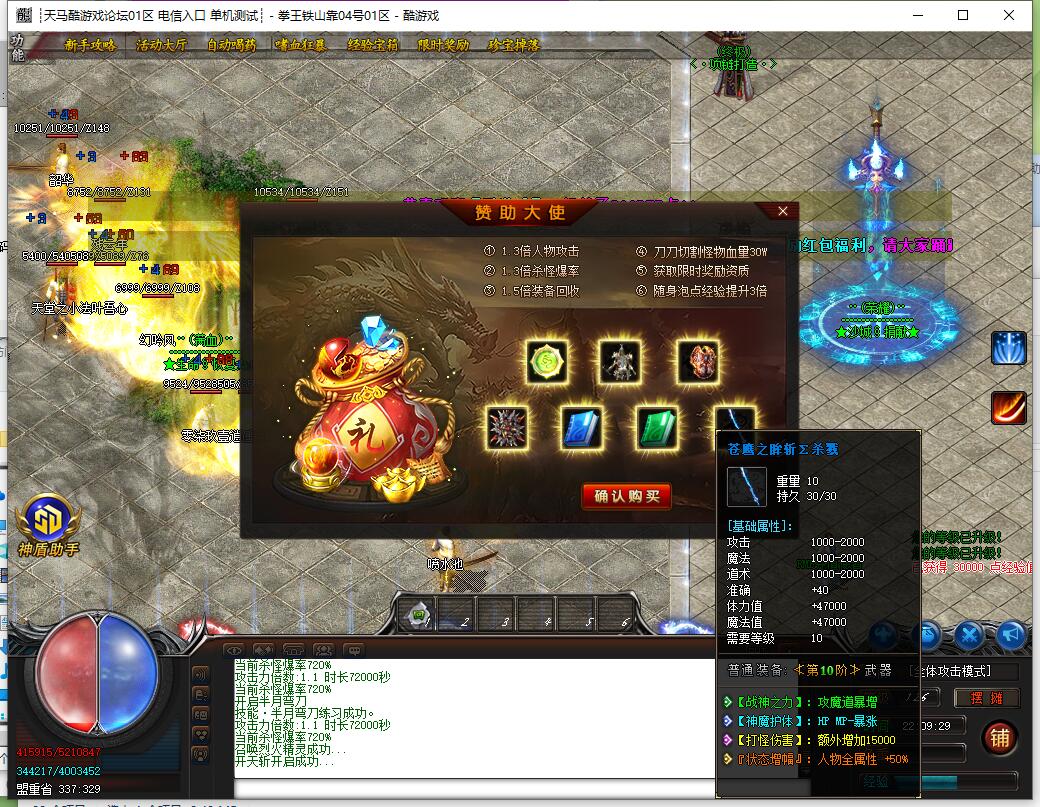 全民火龙单职业微变版本,纯散人服不花钱也可终极,一切靠打无合成,散人打金地图多怪物刷新速度快,装备货币保值,每日人品大爆发轻松300+收入。每天稳定四区开放(10:30 14:30 18:30 22:30),每个地图终极福利BOSS每晚22:01刷新,首区攻沙奖励RMB 588无封顶。市场最强封挂系统24小时接受举报,提醒设置二级密码防扫号。适度游戏益脑,拒绝盗版,享受健康生活。