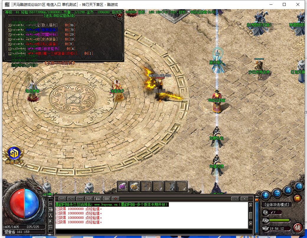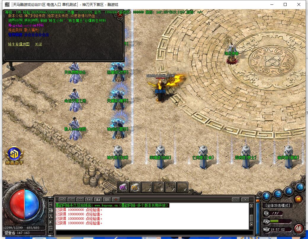 元宝比例1:10000,网银赠送100%,点卡赠送80%!开区后第三天攻城,攻城奖励新区200W元宝,老区100W元宝!天天拿沙,激情无限!