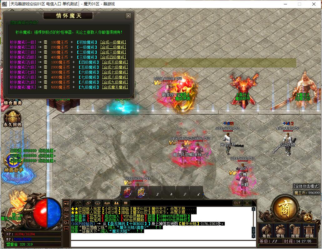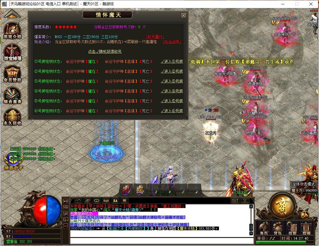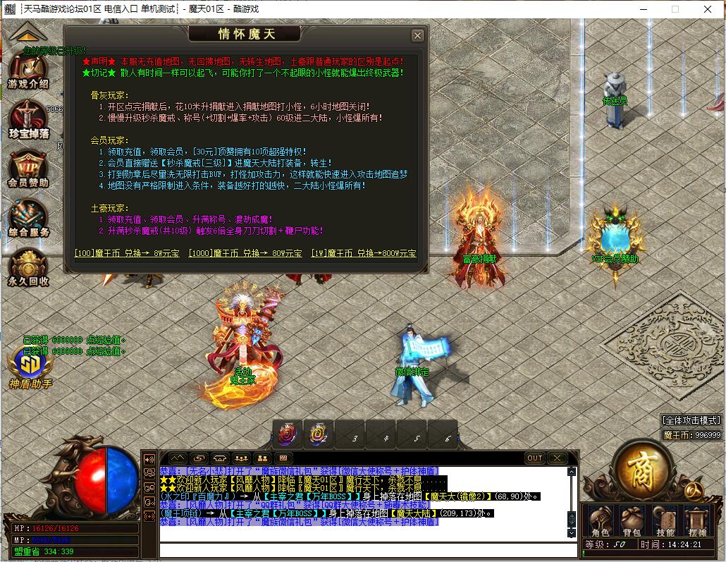 全民火龙单职业微变版本,纯散人服不花钱也可终极,一切靠打无合成,散人打金地图多怪物刷新速度快,装备货币保值,每日人品大爆发轻松300+收入。每天稳定四区开放(10:30 14:30 18:30 22:30),每个地图终极福利BOSS每晚22:01刷新,首区攻沙奖励RMB 588无封顶。市场最强封挂系统24小时接受举报,提醒设置二级密码防扫号。适度游戏益脑,拒绝盗版,享受健康生活。