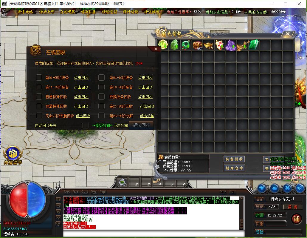 本服还原干净聊天框,无垃圾信息及回收提示,商铺不售材料全靠打怪,永久回收物品均由怪物爆出。游戏问题可QQ群联系客服完美解答,无论是否消费均用心服务,所有玩家公平对待。交易安全需通过商铺RMB点交易,提现手续费仅10%;私下交易一经查实封号并清除提现记录;禁止自动刷屏、骂人小号占安全区,违者警告或封号;严禁加速脱机外挂,发现必删永不解封。