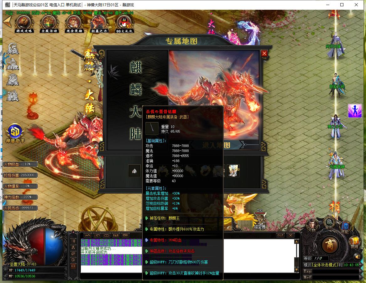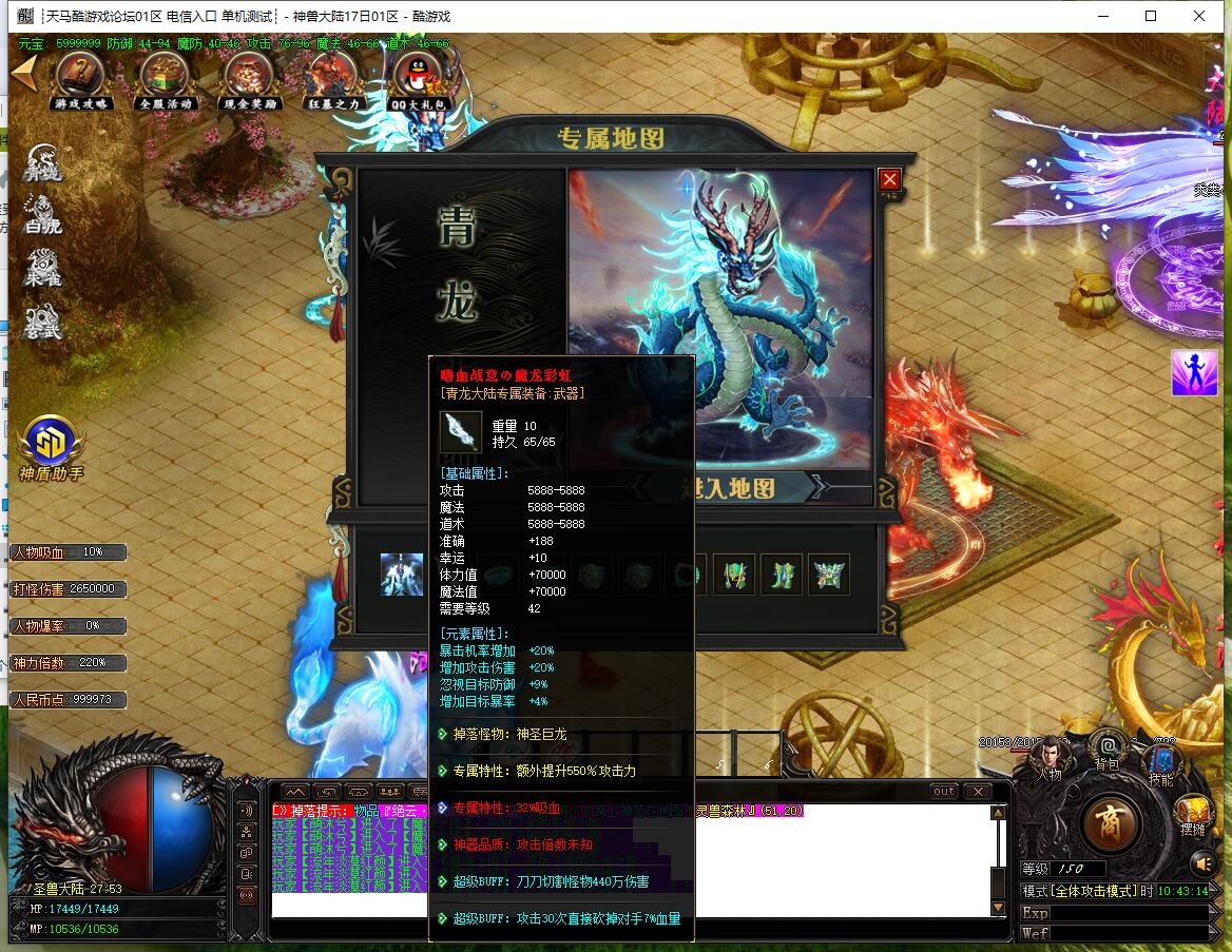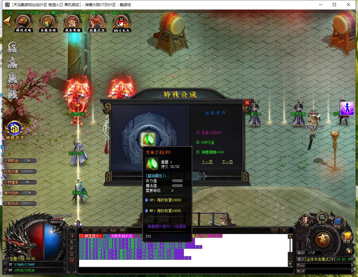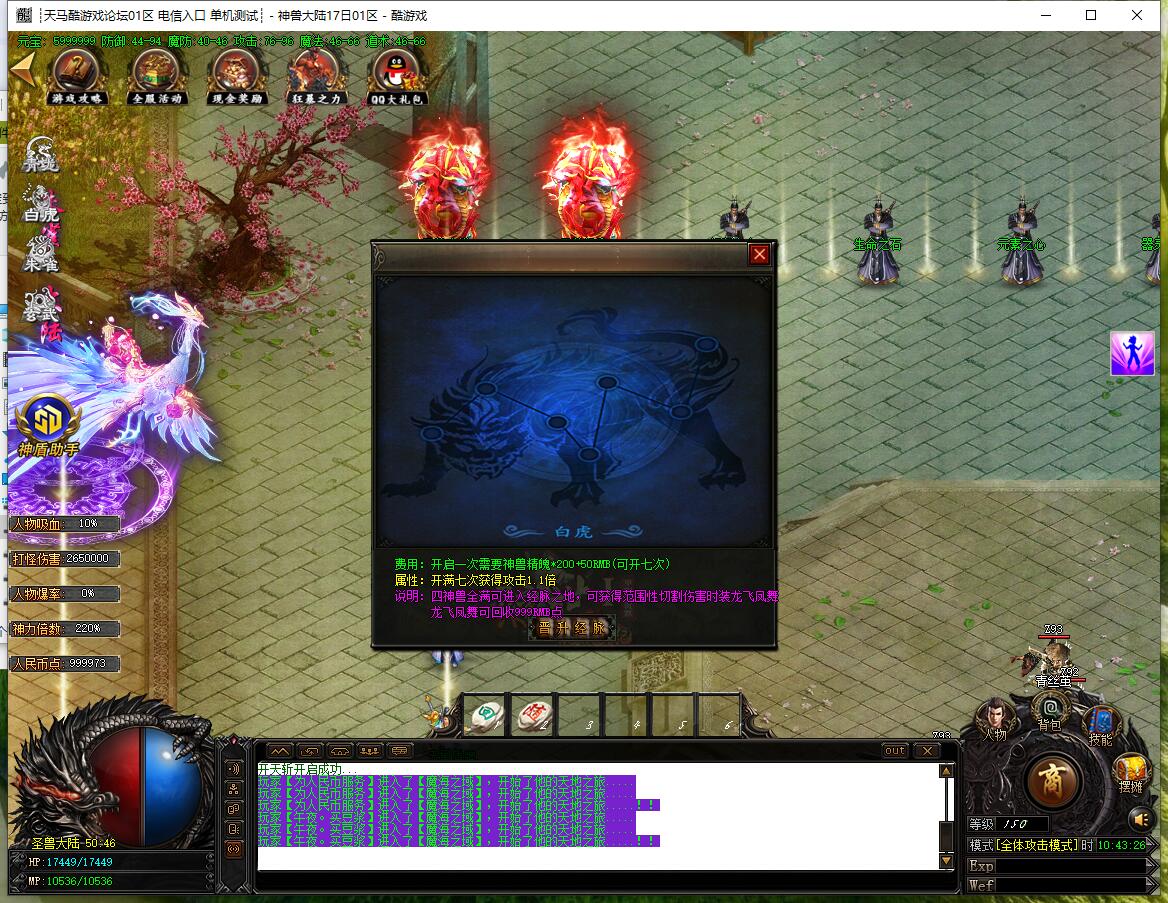 - 圣兽功能:土城左上角合成,四大陆各10级,升满点亮图标,加攻速和特殊buff。