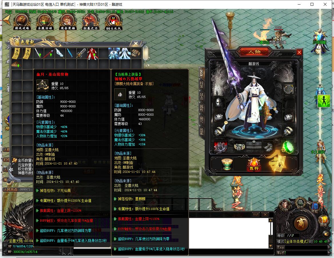 - 四圣兽之剑/甲:青龙大陆合成,集齐四大陆衣服武器,3条特殊buff。