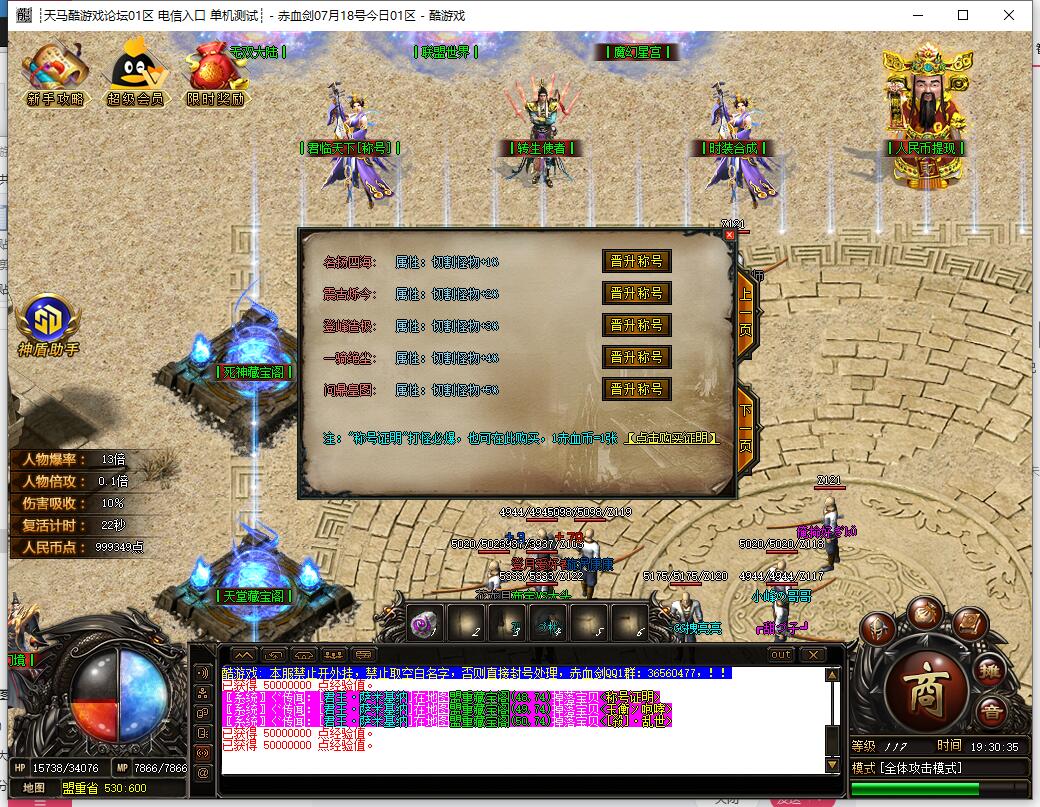 充值比例1:10000,无论土豪还是散人,无论您家族有多大,我们都一视同仁