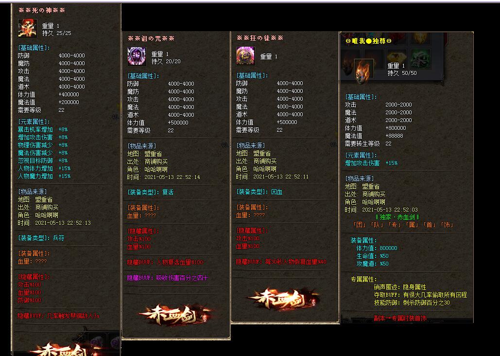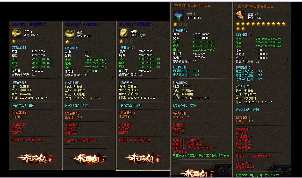 所有的装备套装属性特别给力!加大量血量攻击等属性!