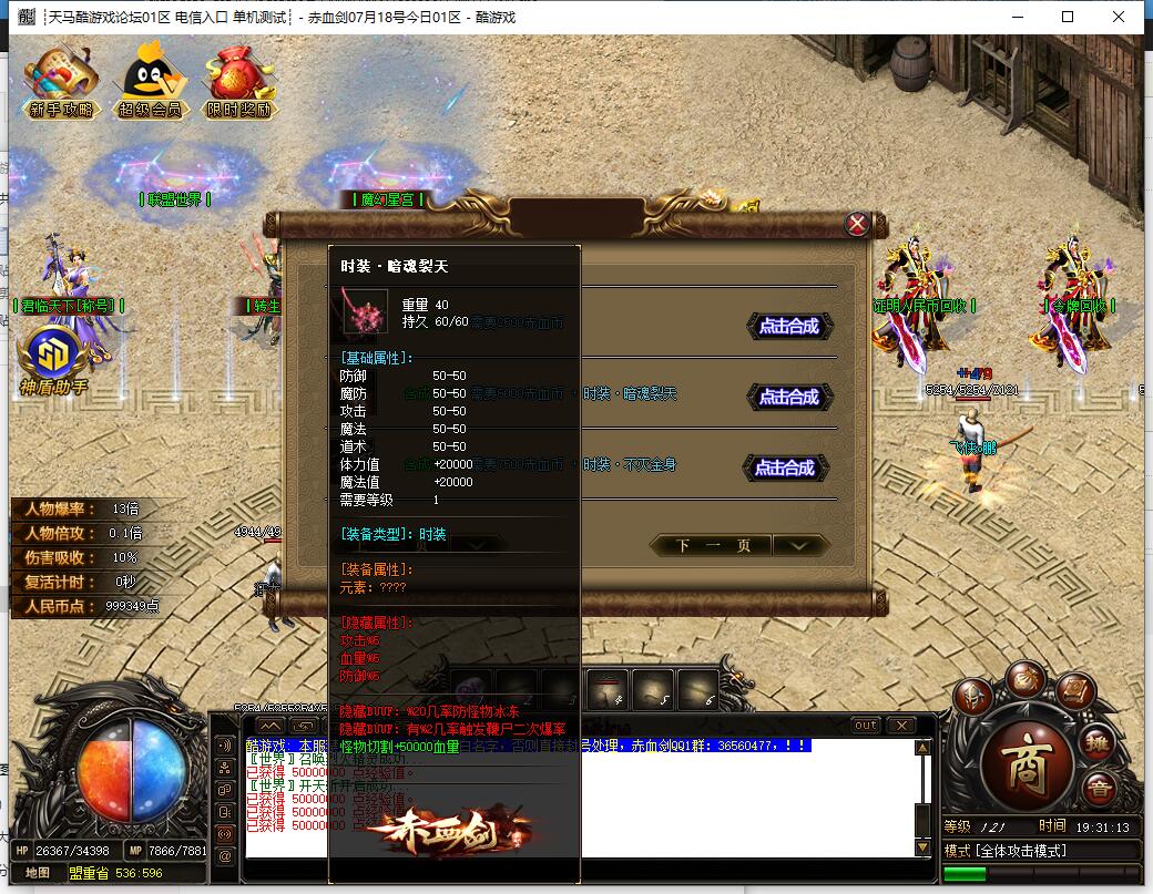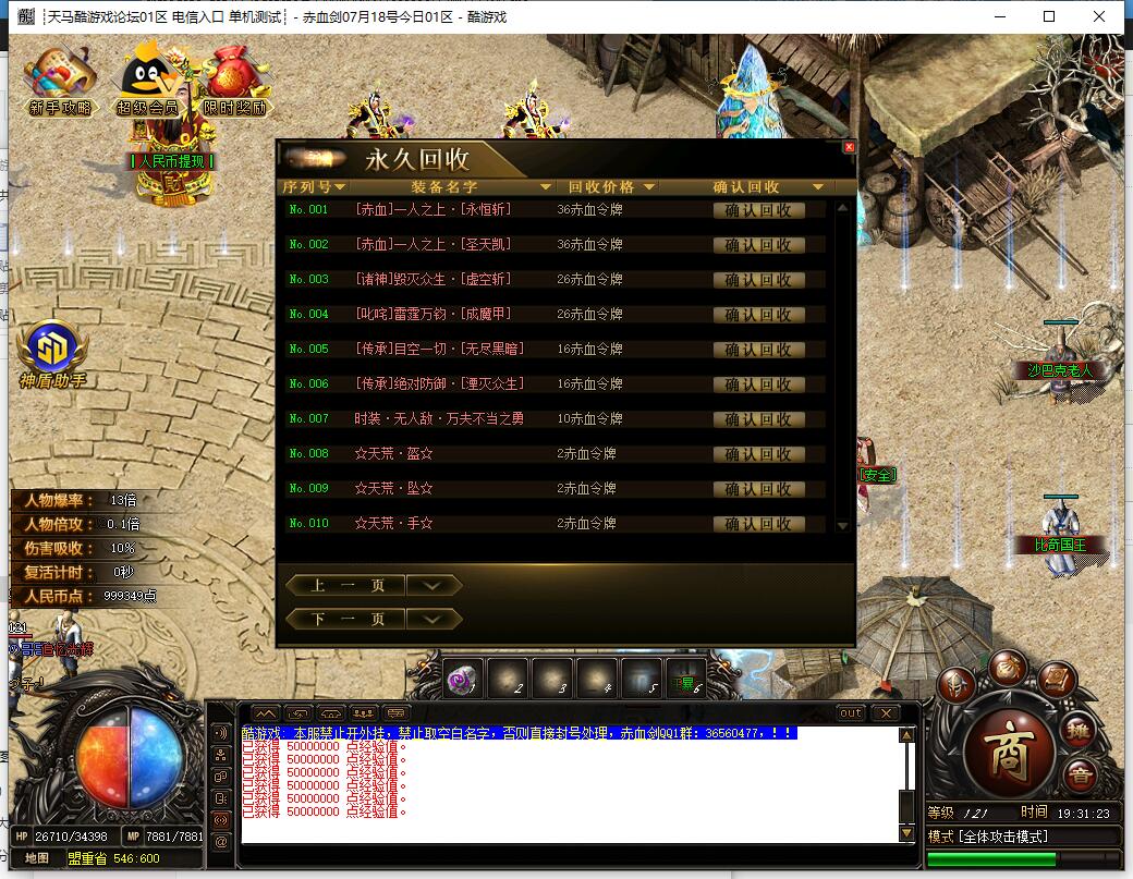 此版本为独家赤血剑,无任何强制.隐藏消费.RMB点合成,只要花时间一样全满