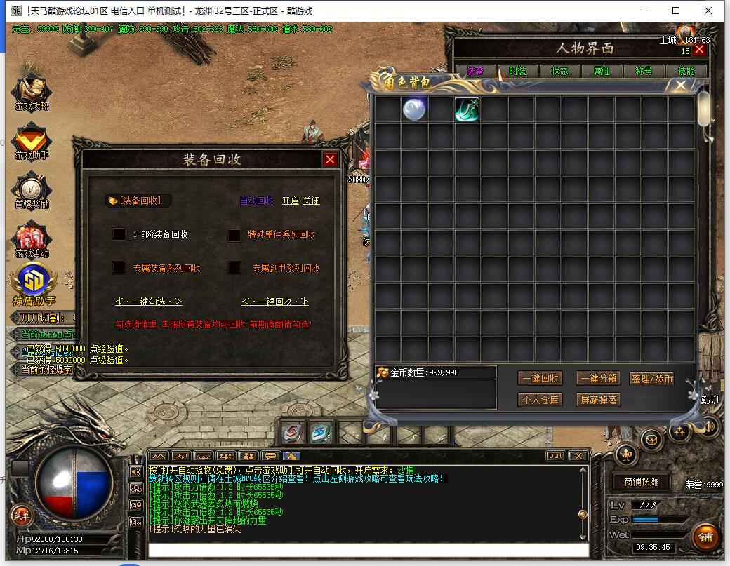 本服几乎所有装备均可分解或一键回收,请把需要的东西放进仓库,造成损失概不负责!