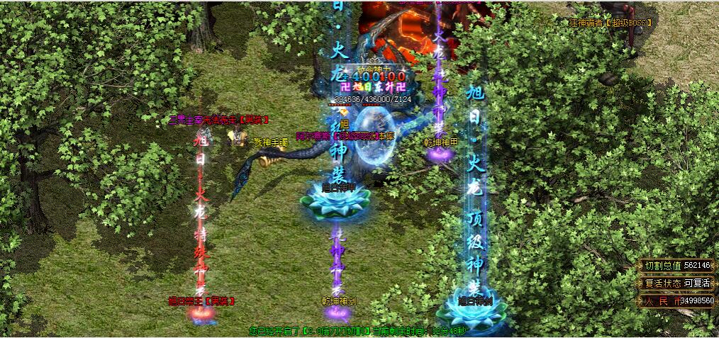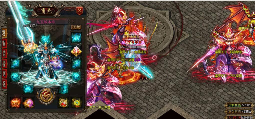 前期打元宝先升级血石、称号、技能,快速提升打怪速度,每个地图都有各种BOSS。
