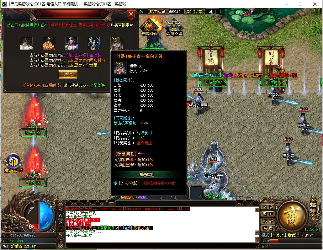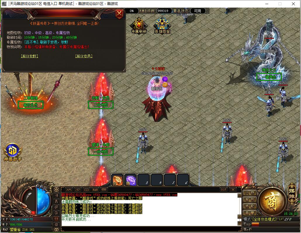 全民火龙单职业微变版本,纯散人服不花钱也可终极,一切靠打无合成,散人打金地图多怪物刷新速度快,装备货币保值,每日人品大爆发轻松300+收入。每天稳定四区开放(10:30 14:30 18:30 22:30),每个地图终极福利BOSS每晚22:01刷新,首区攻沙奖励RMB 588无封顶。市场最强封挂系统24小时接受举报,提醒设置二级密码防扫号。适度游戏益脑,拒绝盗版,享受健康生活。