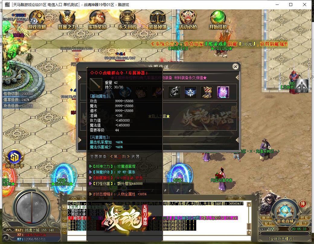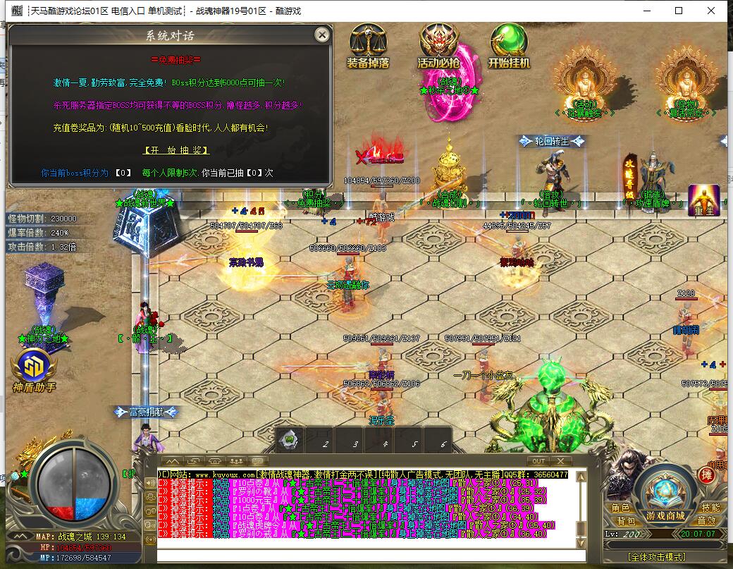 基础32米的号随便打都能搞到全满·所有怪物都爆终极,只要你在线扣怪·就能全满·小打金大激情·还有丰厚沙城红包