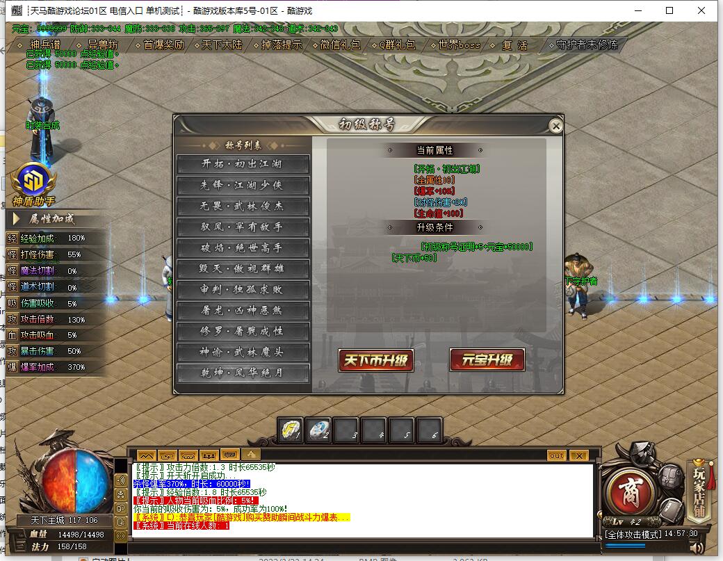 - 直升1大陆满称号:共33元 [测试30天下币]