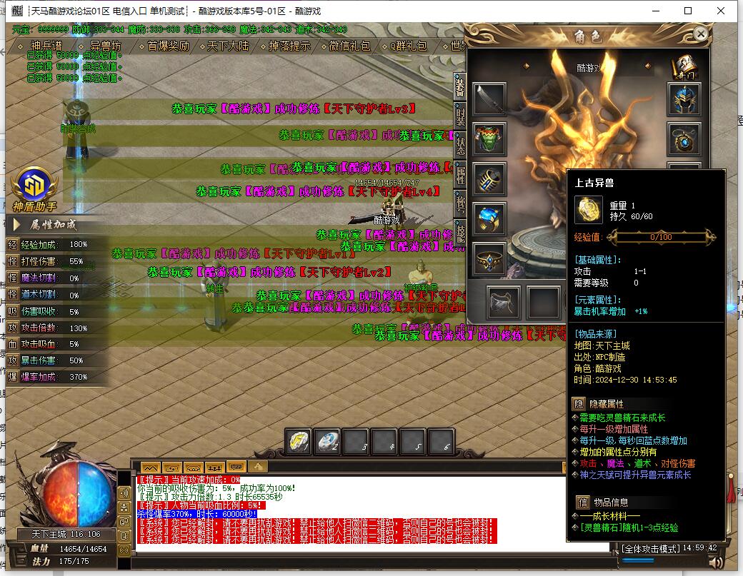 装备属性全面上调,专属神器装备属性大幅提升,体验超快游戏感!金庸大陆往后大小BOSS属性重做,降低立足与通关难度。本服属性平衡,不变态,材料等货币自由交易,玩家根据市场自行定价。