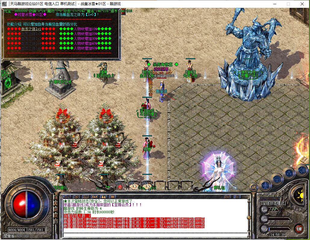 发育介绍:进入冰雪世界,冰雪世界地图内所有小怪几率掉落终极,前期开荒和后期打宝都可以的地图!
