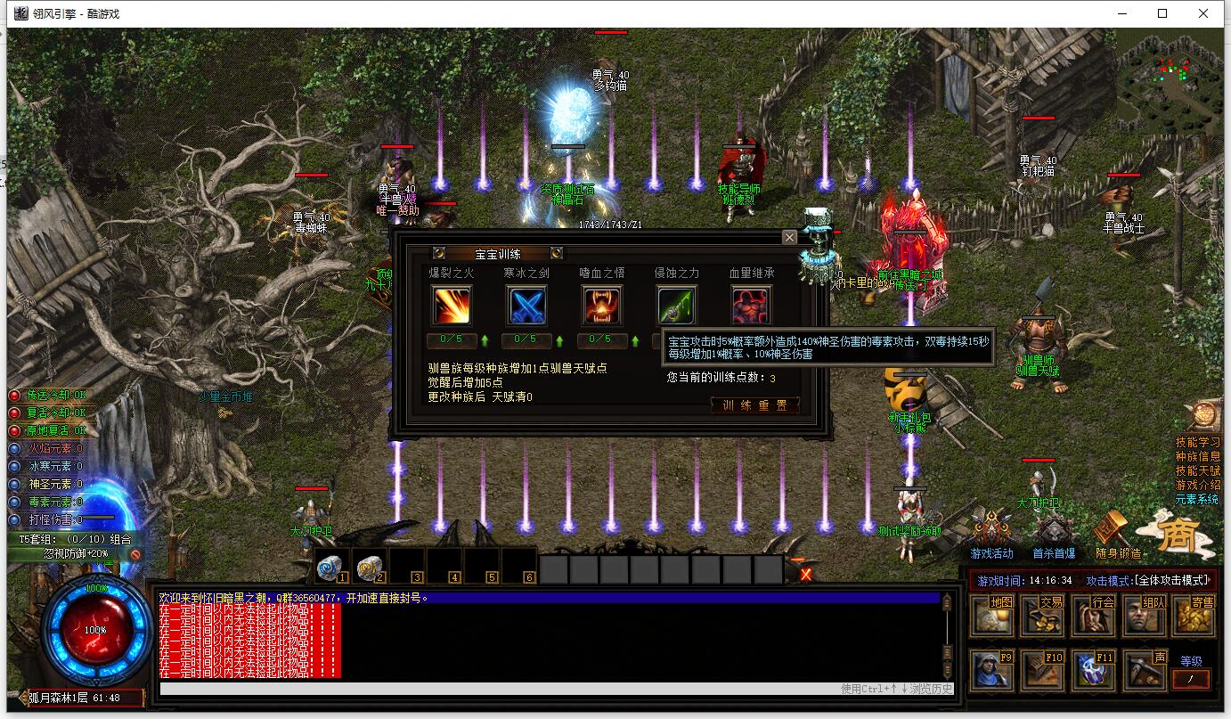 《神魔战场》是一款充满热血与激情的传奇游戏,元神系统作为核心特色玩法,拥有强大耐玩性与探索性,是散人玩家逆袭高富帅的快捷之路。游戏包含元神系统(青龙、白虎、朱雀、玄武元神,满级120级,玄武元神可学阴阳召唤召唤同步属性宝宝,材料靠打怪大量爆出自动食用)、人物神力·坐骑系统(满级坐骑倍攻+20%、爆率+40%、伤害+20%,9级带传送,灵魂宝石与元宝靠打怪)、强力元素·称号系统(满级称号攻+10%、体力+10%、魔力+10%、致命+10%、暴击抗+10%,顶级激活护体神盾,材料靠打怪),以及泰亚史诗特色玩法(幸运最高12激活刀刀最高攻击,武器准确+30,前100级经验卷打怪,后120级埋没之城副本,青铜赞助以上可紫装鉴定)。长期玩法耐玩,助玩家在神魔战场脱颖而出。