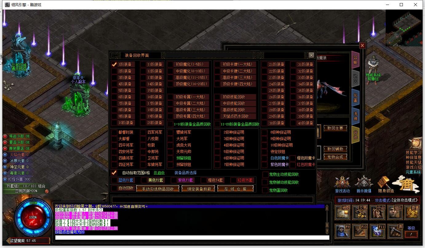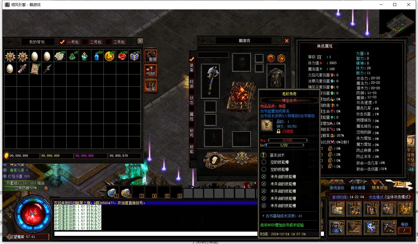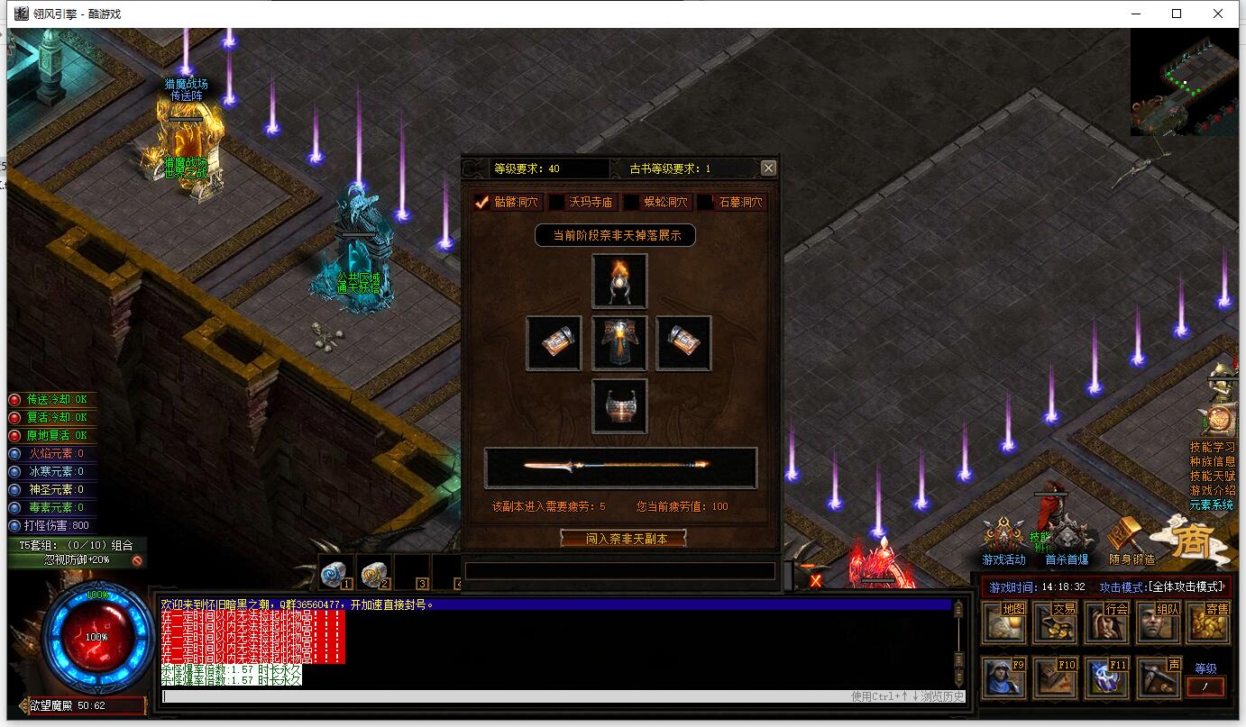 传奇游戏最新版本更新:新增智能挂机系统(入口位于综合服务内),优化所有怪物爆率(专属与材料爆率大幅提升),新增三个不爆物品,同步上线手写攻略(建议配合查询系统游玩,游戏难度适中)。增加元宝获取途径(杀怪即可获得元宝,适配后期高消耗需求),新增两个背包神器,调整金币获取规则(不同赞助等级对应不同获取量),金币回收倍率与赞助等级挂钩。修复3个剧情地图因不刷怪导致的中断问题,解决强化框不显示无法强化的故障,优化杀怪点变量及称号领取条件(一晚上可领完)。整理土城NPC布局(删除无用NPC,界面更整洁),新增GM可控真假爆率系统,优化人物初始攻速(非无限刀)。完成多处剧情地图问题修复与优化:赤沙龙城材料调整;剧情二四个NPC货币消耗、材料及概率优化(适配周服节奏);剧情三老者/尊者材料数量与成功率优化、老马猴/卖酒老头/定海神针合成修改、震天凯/穿针引线合成问题修复;云顶天宫进图条件调整,难度适当降低。