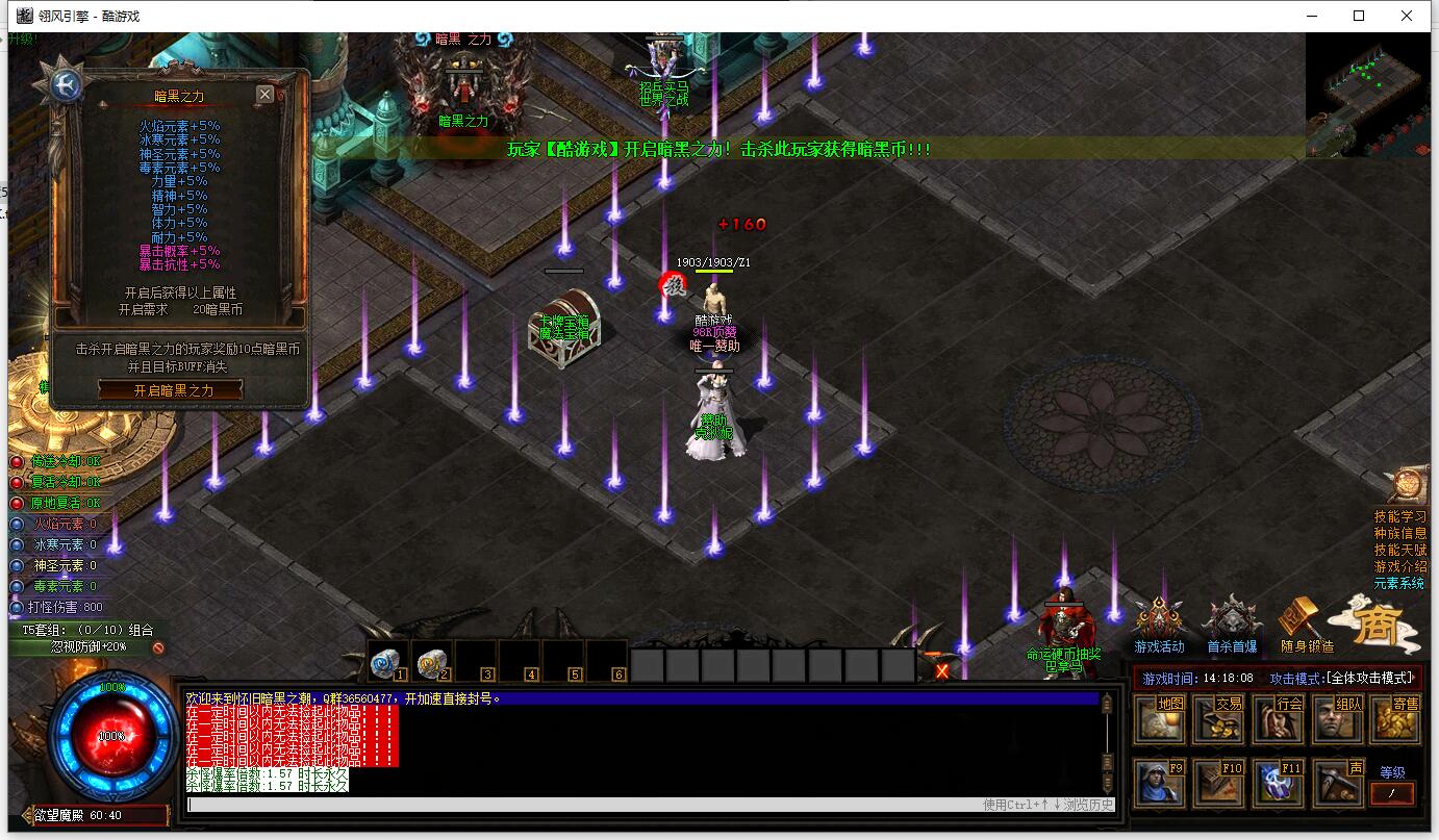 沉默降临是一款情怀单职业传奇游戏,定位公益追梦版,为长期服,装备保值,拒绝快餐模式。特色包含唯一赞助3600沉默币狂暴之力,300沉默币普通沙捐,2000沉默币神豪沙捐,3000沉默币神魔保底(保底8800沉默币)。账号档次分两档:落地全满号(狂暴3+沙捐50+赞助36+神魔88,共177元)、大哥全满号(含额外祈福20次,共353元),无隐藏消费与比例。宝宝成长:0级战兽、50级高级战兽、55级超级战兽、58级终极战兽(群攻)。开荒路线:落地矿区打白怪(狂风项链戒指)→全图圣兽→粉色装备(爪子吸血头)→渡劫选左边吸血命格→合特殊优先盾→开黄(紫色追梦效率低不建议)→开红(可卡怪或堆属性)→开人行。重要提示:十步一杀在56级震天宫三层花费888万金币获得,入口坐标97.17,称号卷轴通过活动或蓝色怪(圣兽)、恭喜发财爆出。郑重承诺爆率全开、公平公正,听取玩家意见重金酬谢,致力于良好游戏体验。沉默币充值比例1:100。