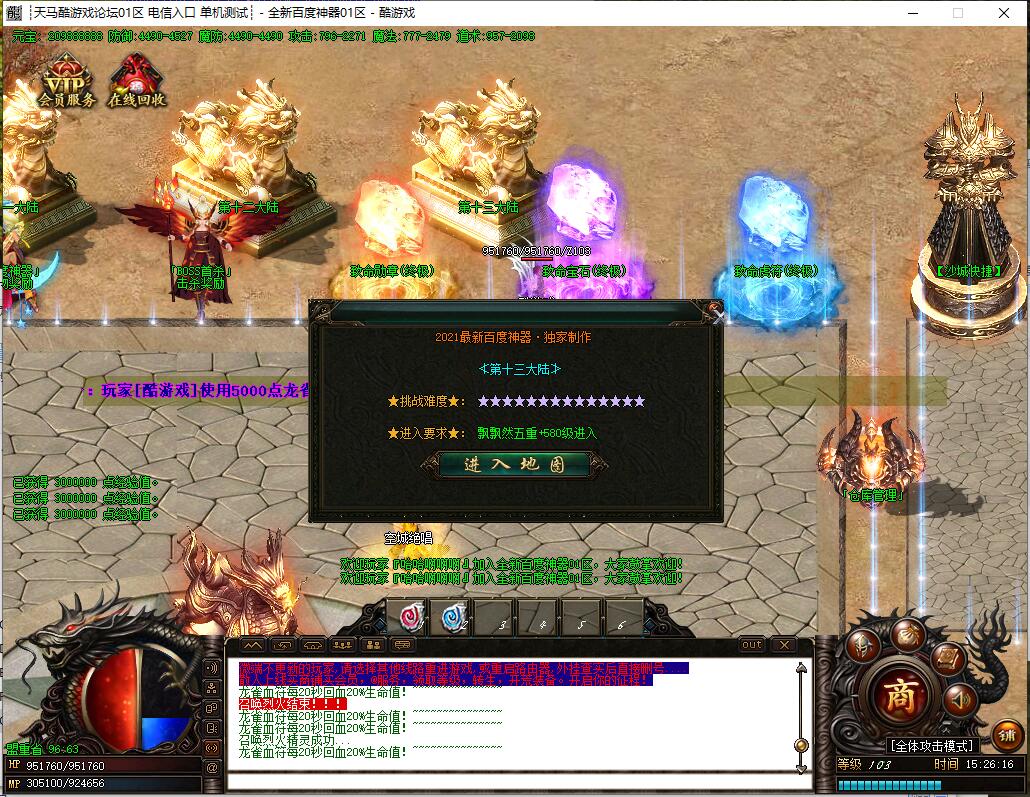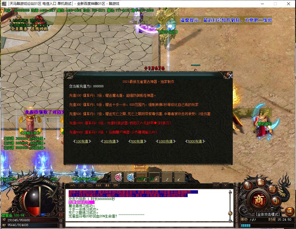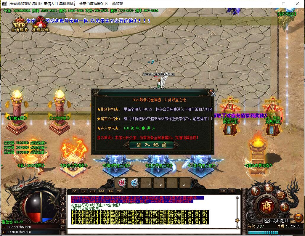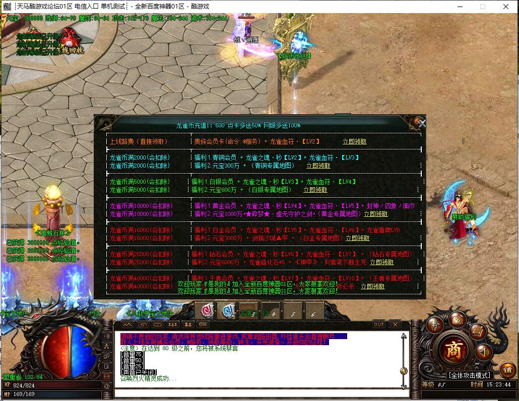 全民火龙单职业微变版本,纯散人服不花钱也可终极,一切靠打无合成,散人打金地图多怪物刷新速度快,装备货币保值,每日人品大爆发轻松300+收入。每天稳定四区开放(10:30 14:30 18:30 22:30),每个地图终极福利BOSS每晚22:01刷新,首区攻沙奖励RMB 588无封顶。市场最强封挂系统24小时接受举报,提醒设置二级密码防扫号。适度游戏益脑,拒绝盗版,享受健康生活。