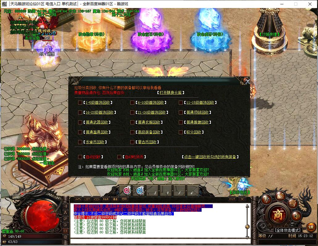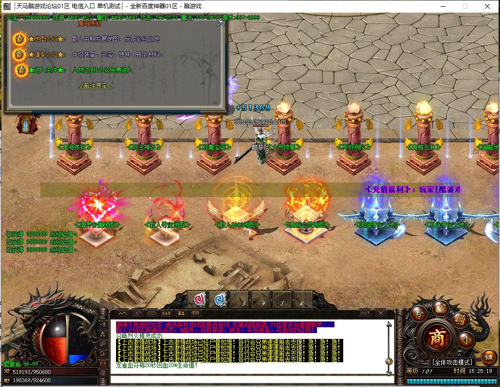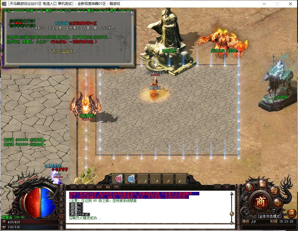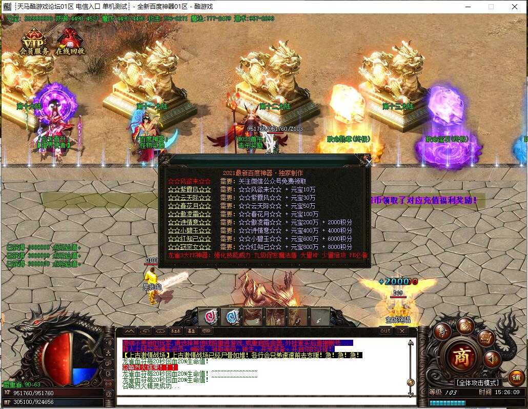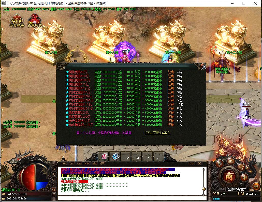 全民火龙单职业微变版本,纯散人服不花钱也可终极,一切靠打无合成,散人打金地图多怪物刷新速度快,装备货币保值,每日人品大爆发轻松300+收入。每天稳定四区开放(10:30 14:30 18:30 22:30),每个地图终极福利BOSS每晚22:01刷新,首区攻沙奖励RMB 588无封顶。市场最强封挂系统24小时接受举报,提醒设置二级密码防扫号。适度游戏益脑,拒绝盗版,享受健康生活。