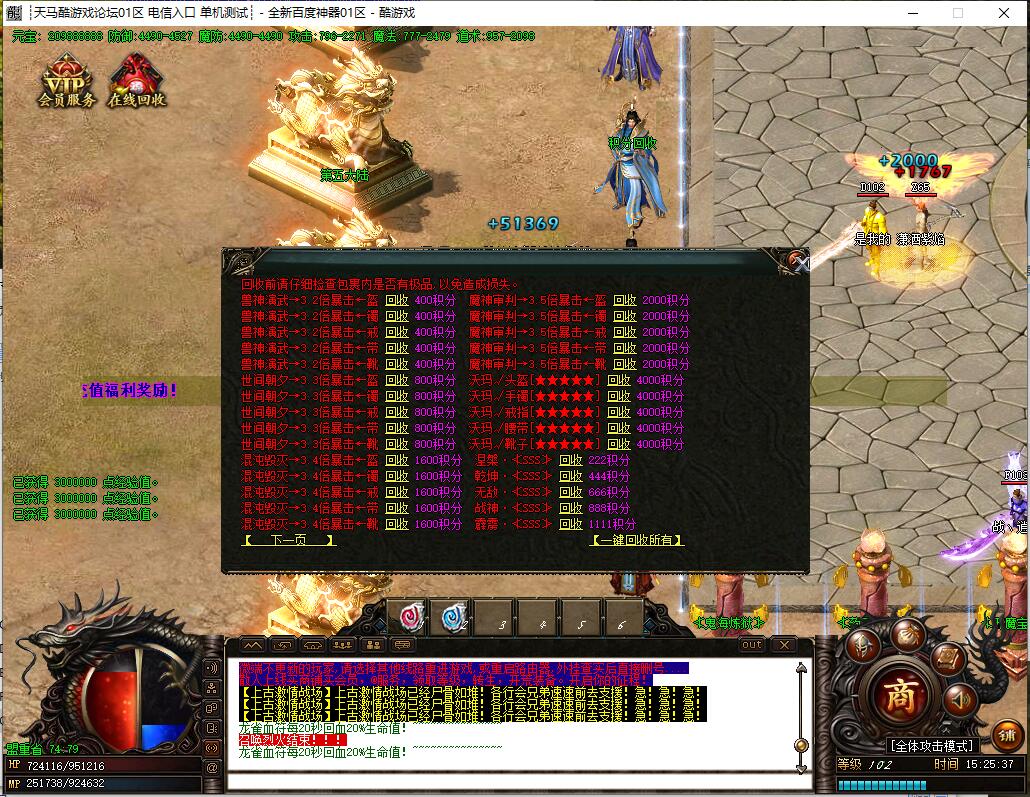 装备保值永久回收、几百个限时装备回收