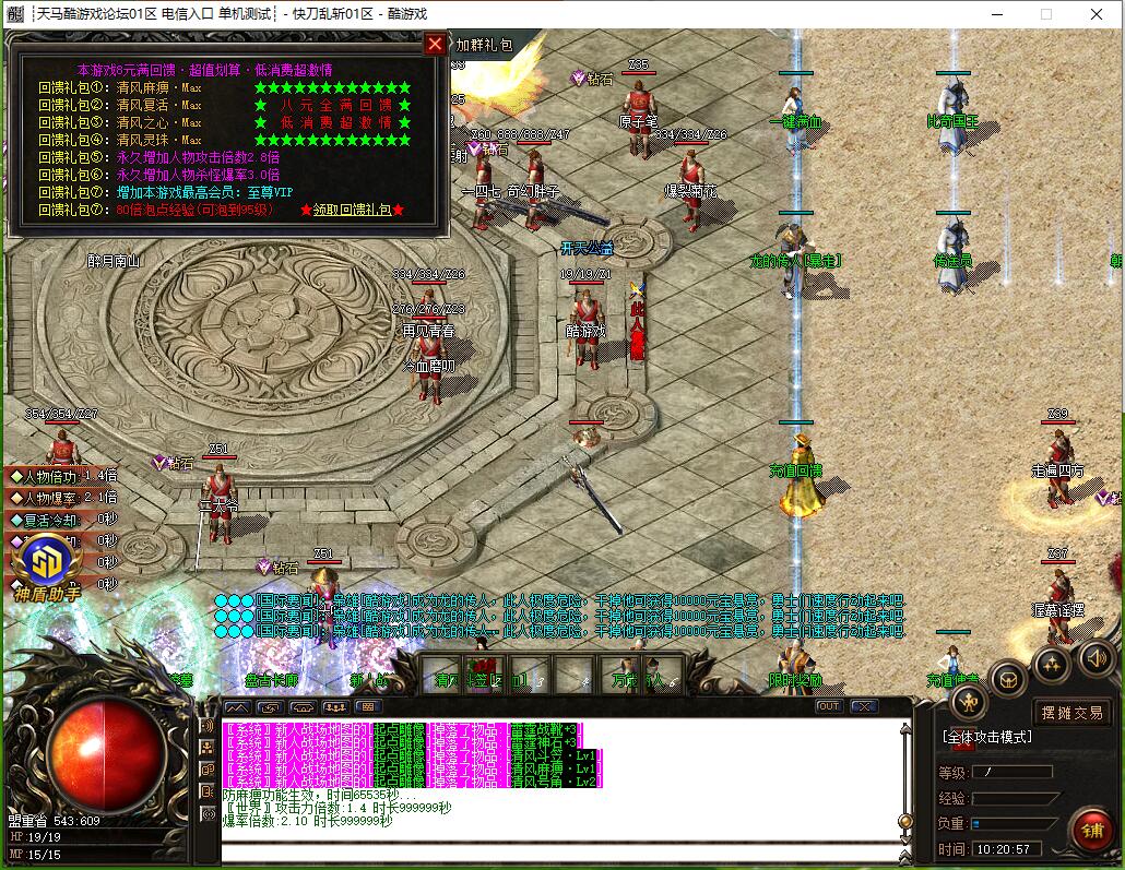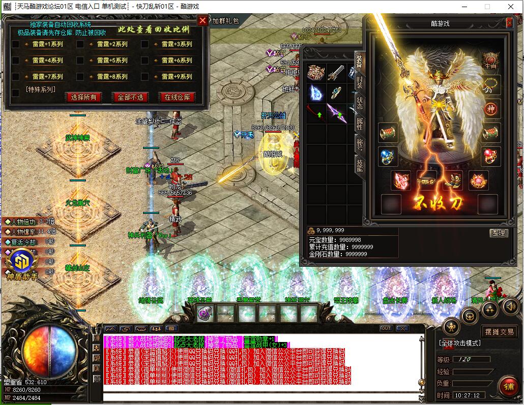 进服直送无限刀速,120格大背包免费赠送,自动捡取自动合成,小怪爆九套装备,充值点乱爆。