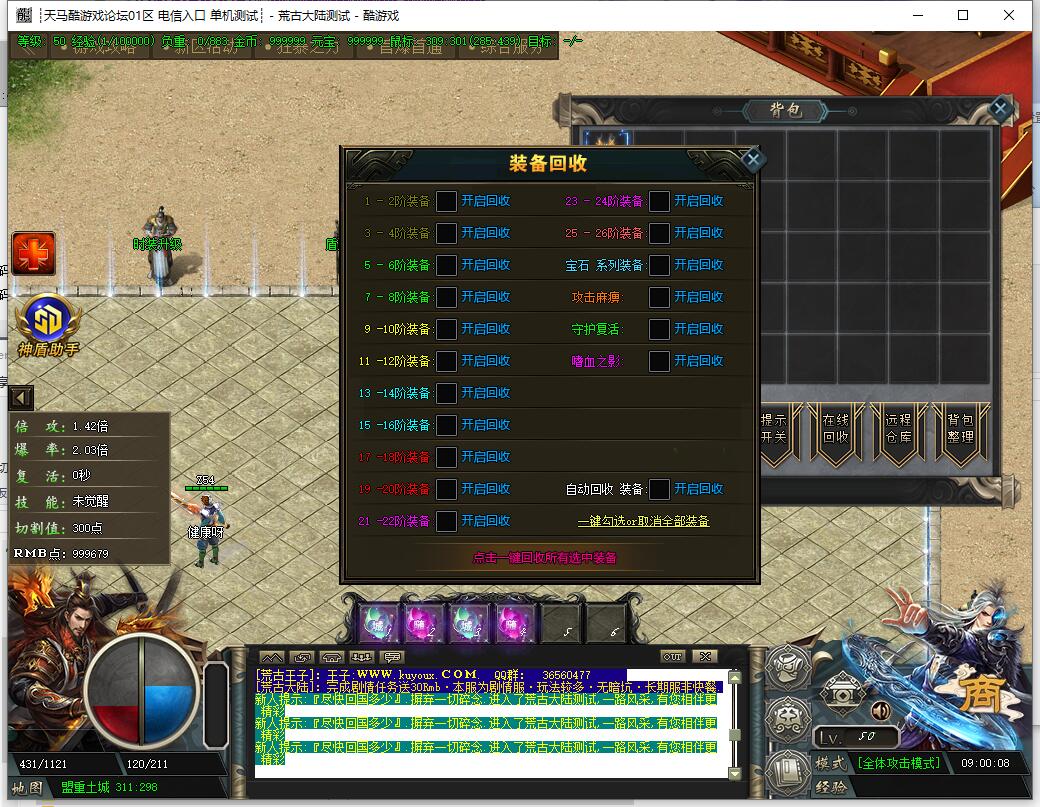 本服还原干净聊天框,无垃圾信息及回收提示,商铺不售材料全靠打怪,永久回收物品均由怪物爆出。游戏问题可QQ群联系客服完美解答,无论是否消费均用心服务,所有玩家公平对待。交易安全需通过商铺RMB点交易,提现手续费仅10%;私下交易一经查实封号并清除提现记录;禁止自动刷屏、骂人小号占安全区,违者警告或封号;严禁加速脱机外挂,发现必删永不解封。