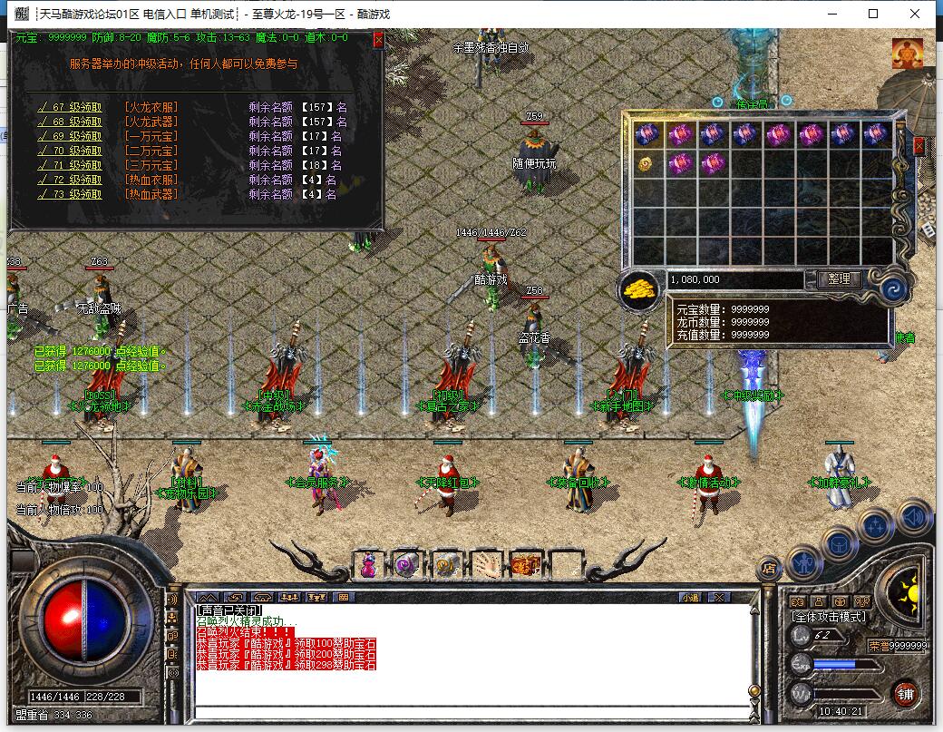 全民火龙单职业微变版本,纯散人服不花钱也可终极,一切靠打无合成,散人打金地图多怪物刷新速度快,装备货币保值,每日人品大爆发轻松300+收入。每天稳定四区开放(10:30 14:30 18:30 22:30),每个地图终极福利BOSS每晚22:01刷新,首区攻沙奖励RMB 588无封顶。市场最强封挂系统24小时接受举报,提醒设置二级密码防扫号。适度游戏益脑,拒绝盗版,享受健康生活。