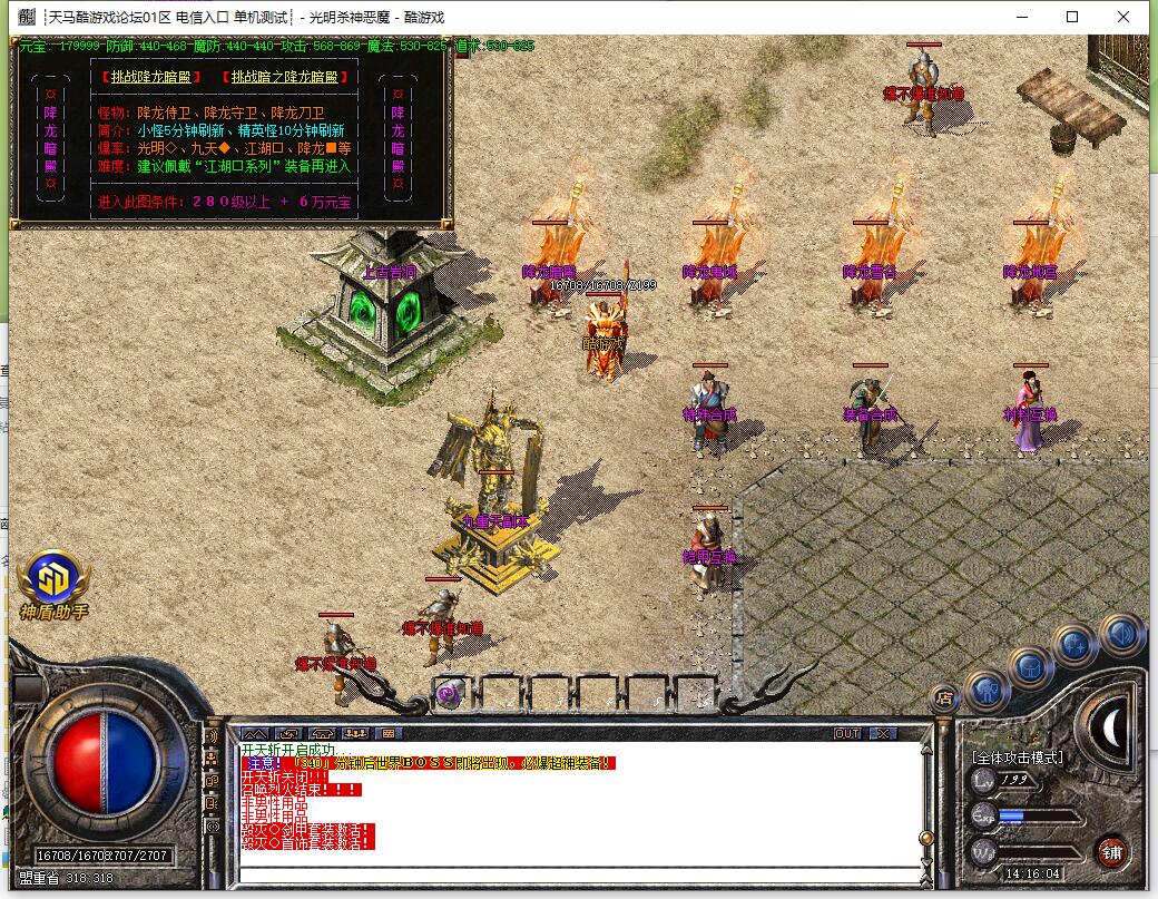 - 新增特色地图,适合散人打宝,组队混终极装备!散人不花钱一样混得好!