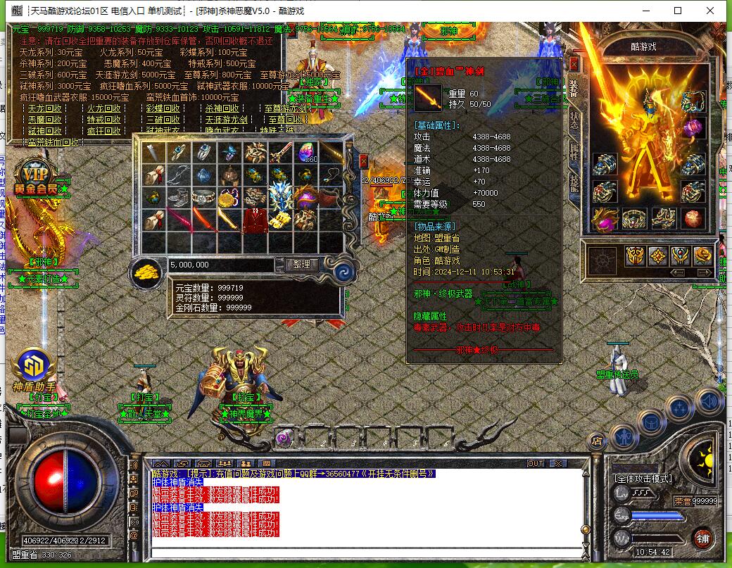 本服还原干净聊天框,无垃圾信息及回收提示,商铺不售材料全靠打怪,永久回收物品均由怪物爆出。游戏问题可QQ群联系客服完美解答,无论是否消费均用心服务,所有玩家公平对待。交易安全需通过商铺RMB点交易,提现手续费仅10%;私下交易一经查实封号并清除提现记录;禁止自动刷屏、骂人小号占安全区,违者警告或封号;严禁加速脱机外挂,发现必删永不解封。