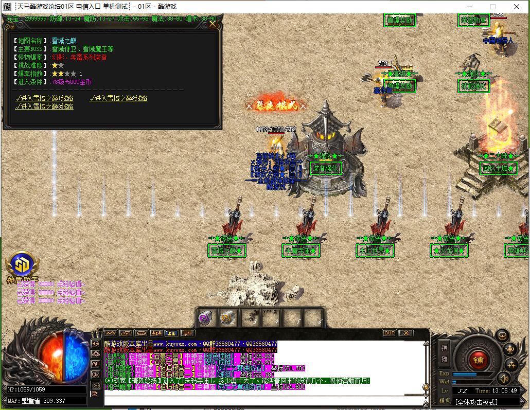 全民火龙单职业微变版本,纯散人服不花钱也可终极,一切靠打无合成,散人打金地图多怪物刷新速度快,装备货币保值,每日人品大爆发轻松300+收入。每天稳定四区开放(10:30 14:30 18:30 22:30),每个地图终极福利BOSS每晚22:01刷新,首区攻沙奖励RMB 588无封顶。市场最强封挂系统24小时接受举报,提醒设置二级密码防扫号。适度游戏益脑,拒绝盗版,享受健康生活。