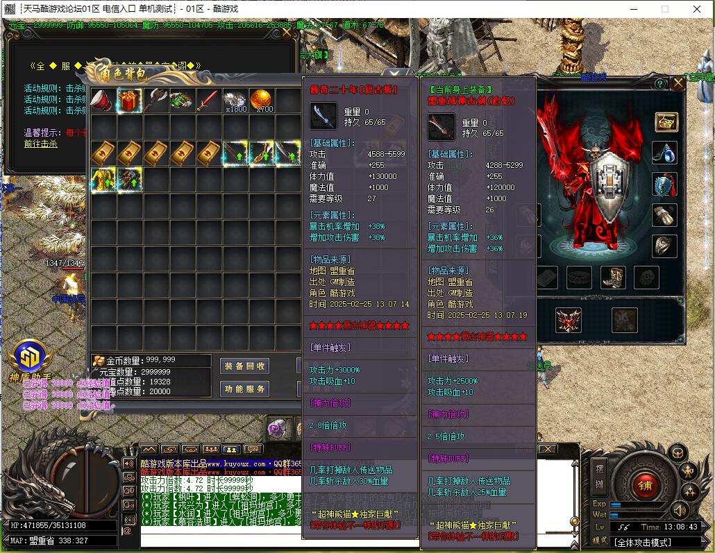 本服还原干净聊天框,无垃圾信息及回收提示,商铺不售材料全靠打怪,永久回收物品均由怪物爆出。游戏问题可QQ群联系客服完美解答,无论是否消费均用心服务,所有玩家公平对待。交易安全需通过商铺RMB点交易,提现手续费仅10%;私下交易一经查实封号并清除提现记录;禁止自动刷屏、骂人小号占安全区,违者警告或封号;严禁加速脱机外挂,发现必删永不解封。