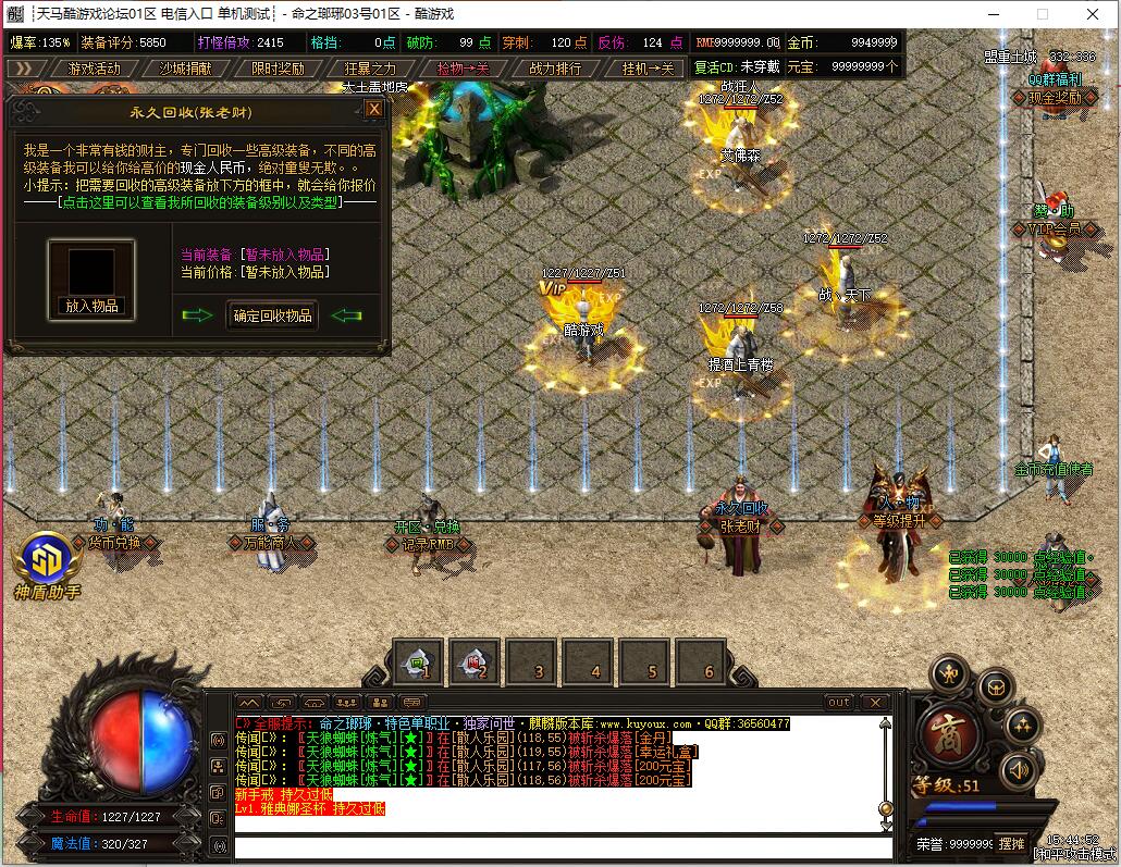 本服还原干净聊天框,无垃圾信息及回收提示,商铺不售材料全靠打怪,永久回收物品均由怪物爆出。游戏问题可QQ群联系客服完美解答,无论是否消费均用心服务,所有玩家公平对待。交易安全需通过商铺RMB点交易,提现手续费仅10%;私下交易一经查实封号并清除提现记录;禁止自动刷屏、骂人小号占安全区,违者警告或封号;严禁加速脱机外挂,发现必删永不解封。