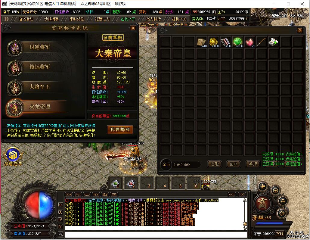 全民火龙单职业微变版本,纯散人服不花钱也可终极,一切靠打无合成,散人打金地图多怪物刷新速度快,装备货币保值,每日人品大爆发轻松300+收入。每天稳定四区开放(10:30 14:30 18:30 22:30),每个地图终极福利BOSS每晚22:01刷新,首区攻沙奖励RMB 588无封顶。市场最强封挂系统24小时接受举报,提醒设置二级密码防扫号。适度游戏益脑,拒绝盗版,享受健康生活。